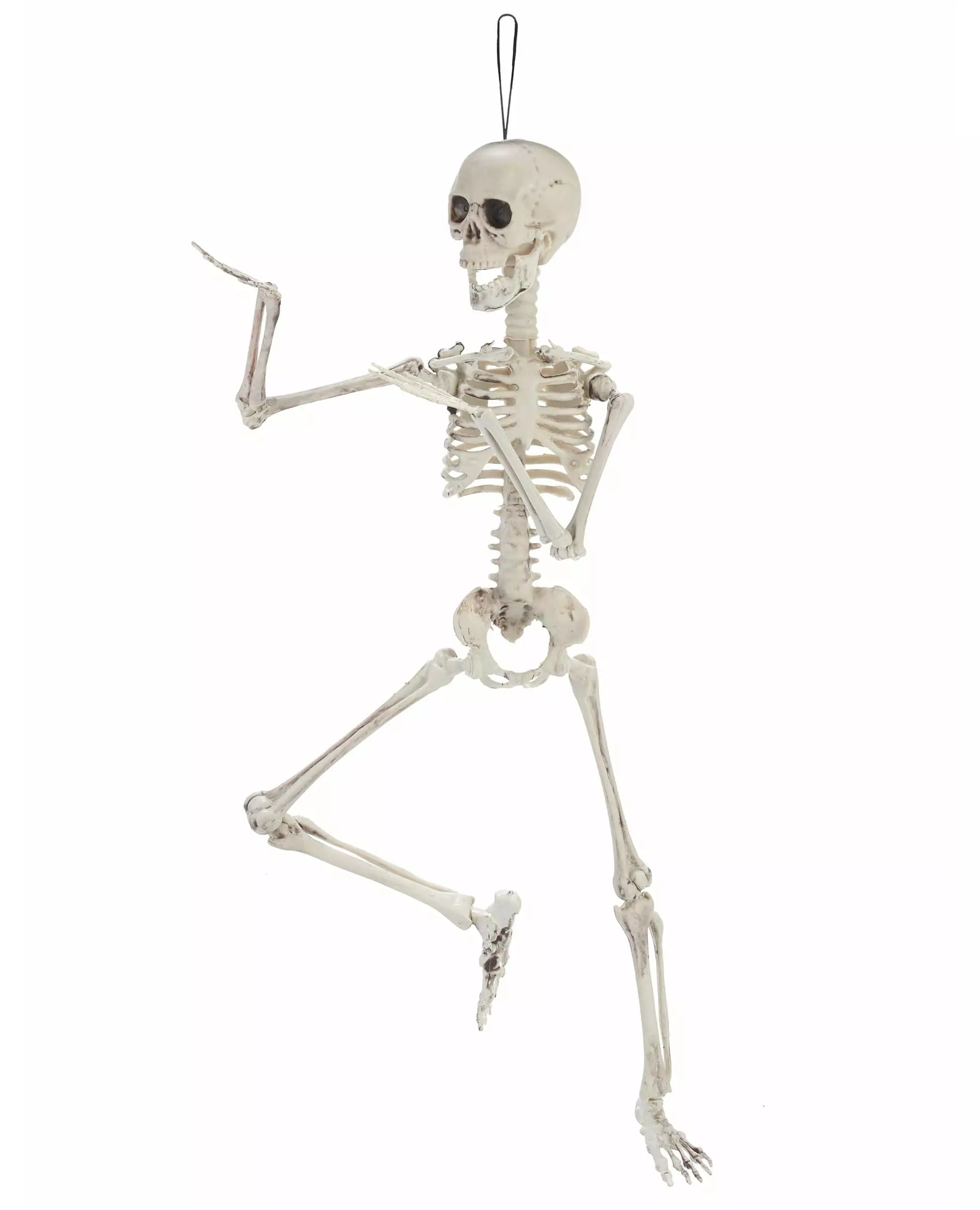 En ekte utstillingsdukke! Denne artikulerte skjelettdekorasjonen måler 48 cm. Laget av plast, er alle leddene (og til og med kjeven) artikulerte. Du kan gi den hvilken som helst posisjon, fra den mest klassiske til den mest groteske. En liten snor lar deg henge den hvor som helst. Den vil være en flott dekorasjon i stuen din eller på en tregren under en skrekkfest som Halloween. Inkludert tilbehør: Skjelett Materiale: Plast