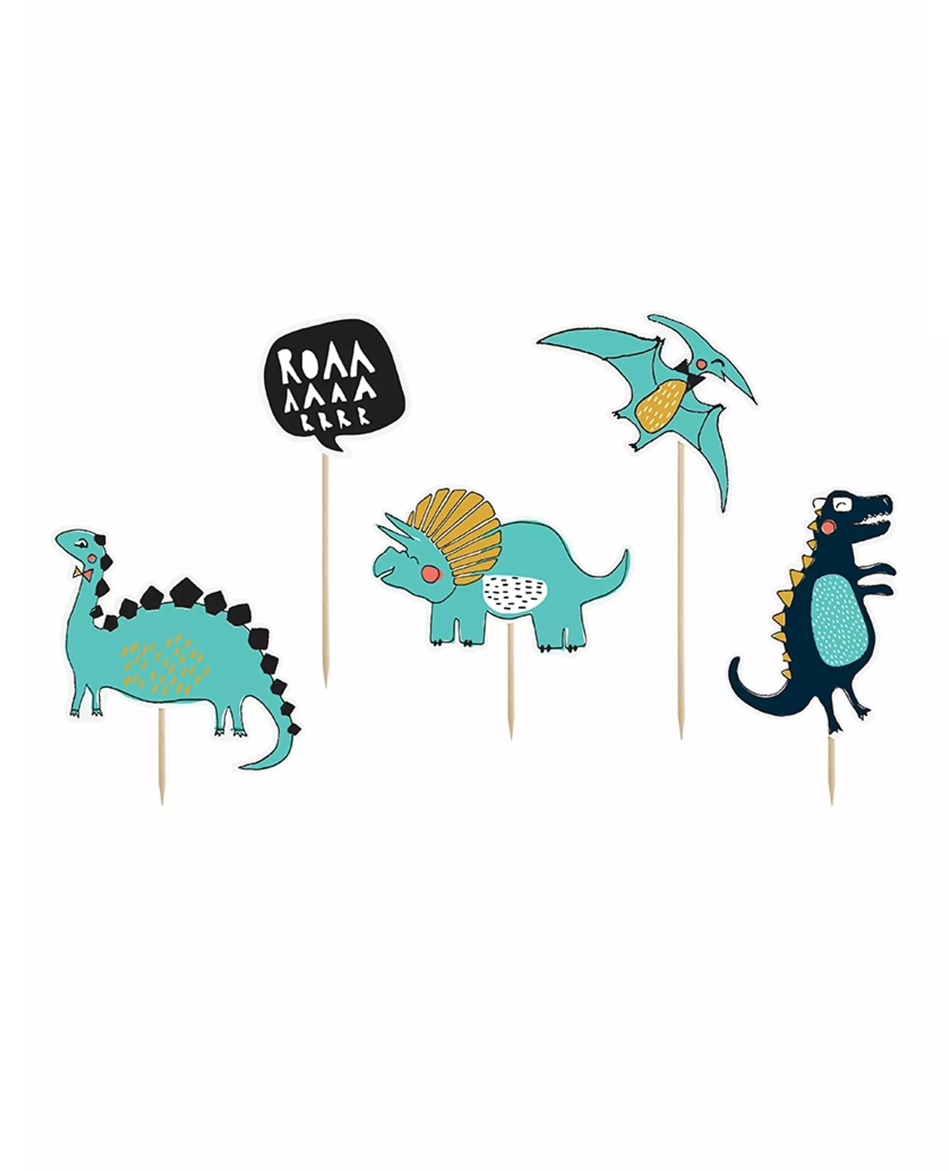 5 blå dinosaur-kaketopper i papp, 10,5–20 cm