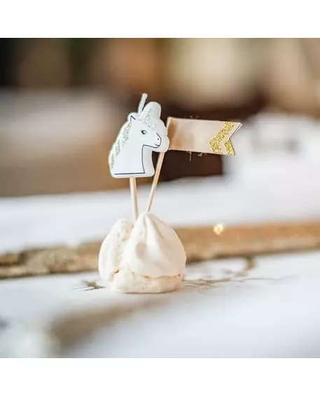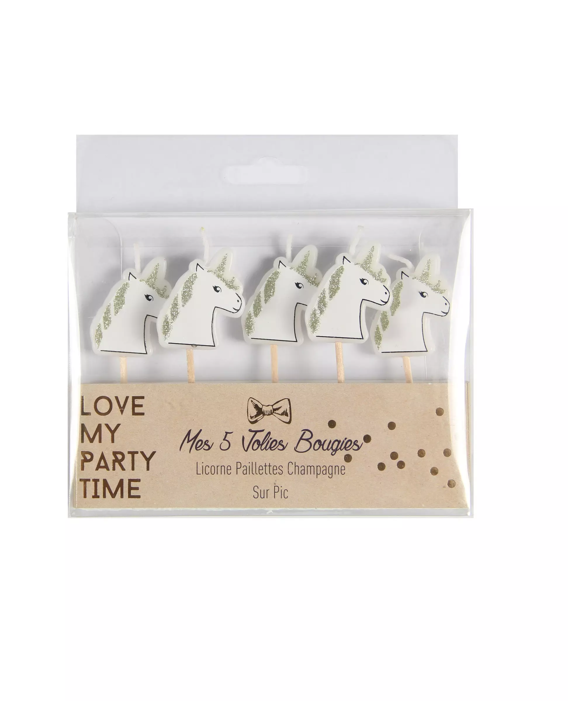 5 enhjørningslys på en champagneglitterpinne 4,5 x 3 cm
