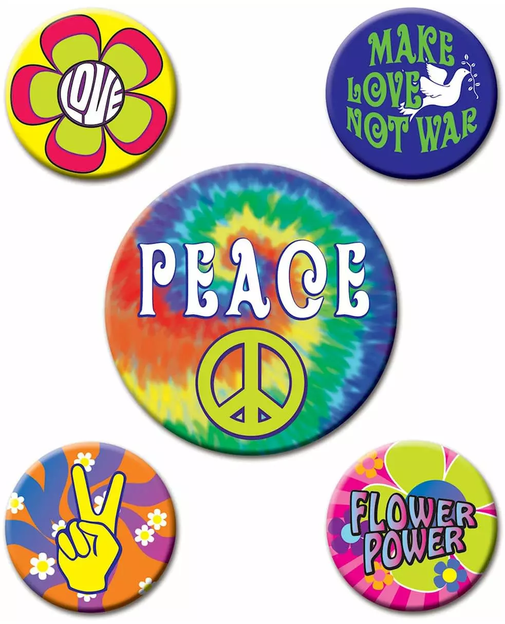 5 hippiemerker fra 60-tallet 3,5 til 6 cm