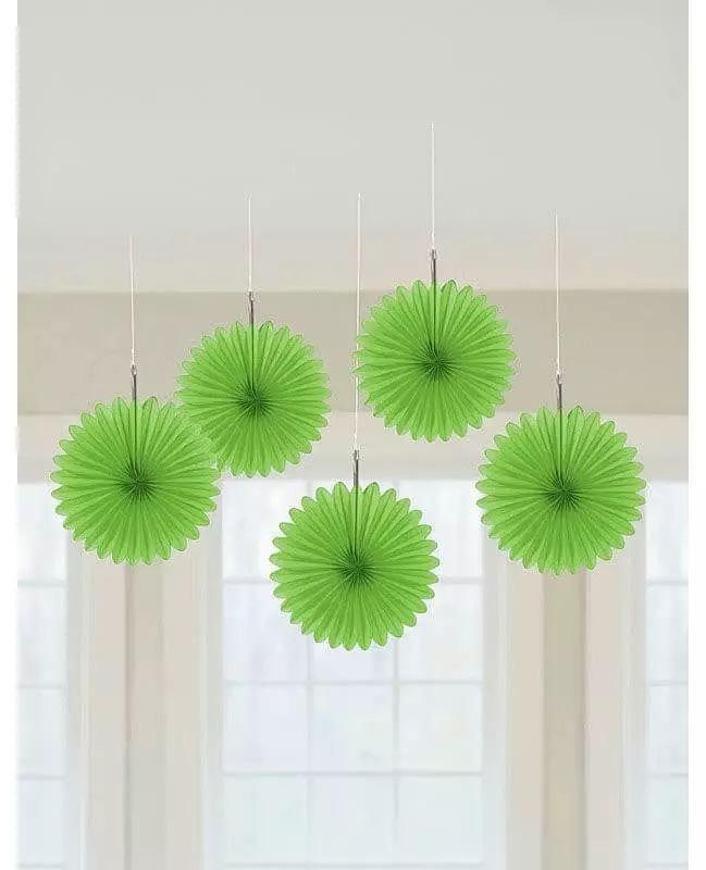 Et snev av grønt i innredningen din! Sett med 5 grønne rosettoppheng. De måler 15,2 cm i diameter og vil være perfekte for å dekorere rommet ditt under en festlig begivenhet. Inkludert tilbehør: 5 rosetter Materiale: Papir