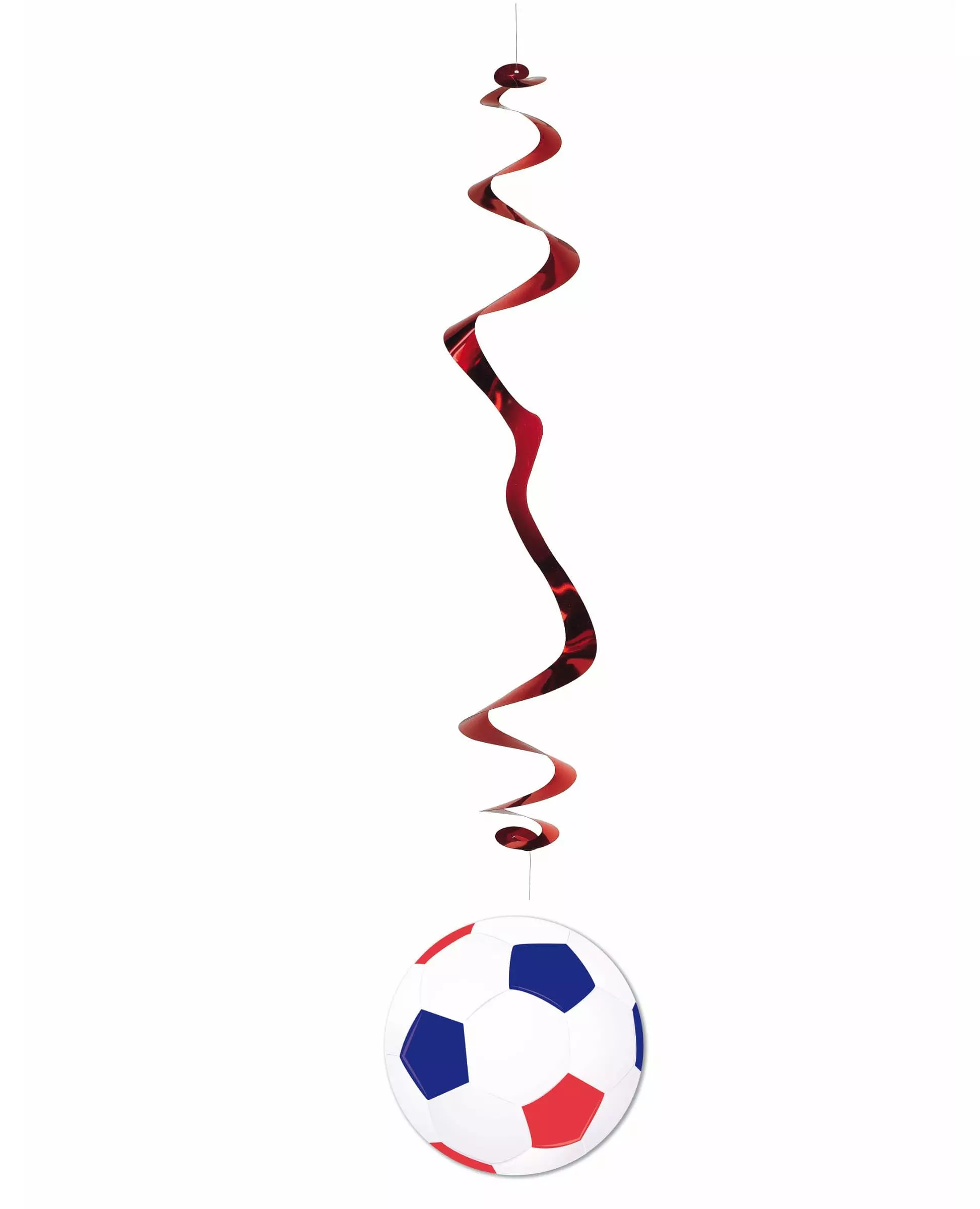 Ideelle oppheng for sportsbegivenhetene dine! Dette settet består av 6 brannsikre oppheng. De måler omtrent 80 cm og er dekorert med røde spiraler og et klistremerke som representerer en fotball i Frankrikes blå, hvite og røde farger. Disse trefargede opphengene vil være ideelle for å fullføre dekorasjonen av rommet ditt og støtte favorittlaget ditt under fotball-VM! Inkludert tilbehør: 6 oppheng Materiale: Plast, brannsikkert papir