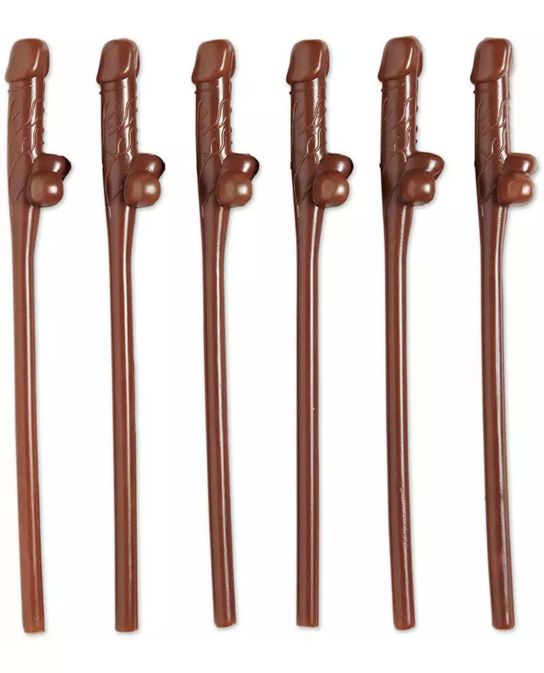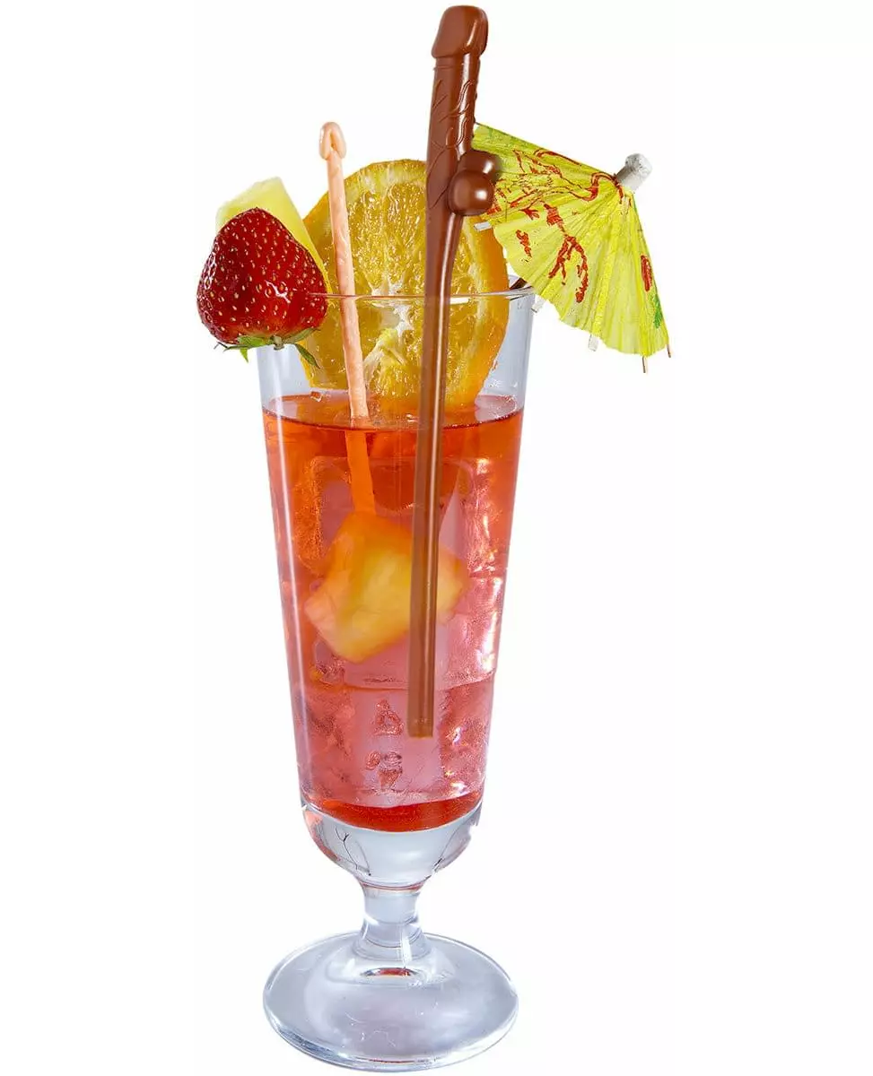 Slusker fulle av ironi! Disse seks frekke brune sugerørene i pilform er den perfekte detaljen for å krydre drinkene dine med humor. Deres suggestive design vil ikke gå ubemerket hen og vil bringe en god dose latter til kveldene dine med venner, utdrikningslag eller uvanlige bursdager. De er gjenbrukbare og kombinerer moro og praktisk bruk for cocktailer som ikke mangler bit. Et must-have for øyeblikk som er fullt omfavnet og uten tabuer! Inkludert tilbehør: 6 sugerør Materiale: Plast