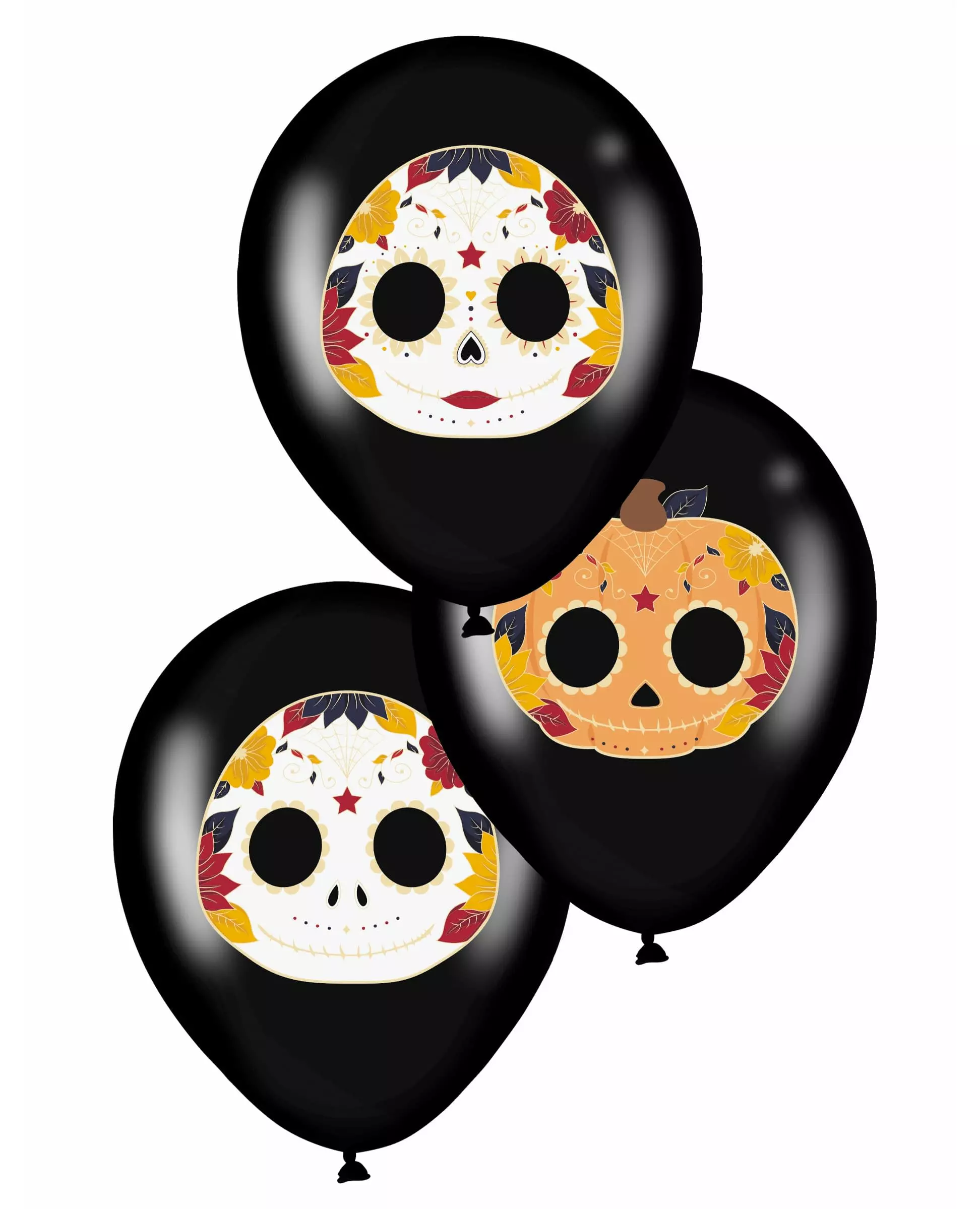 Ballonger til en søt Dia de los Muertos! Disse Dia de los Muertos-lateksballongene selges i pakker med 6. Du finner 2 calavera-mann-design, 2 calavera-kvinne-design og 2 gresskar. De måler omtrent 28 cm oppblåst. Barn vil bli begeistret over disse ballongene for å feire Dia de los Muertos!. Inkludert tilbehør: 6 ballonger Materiale: Lateks