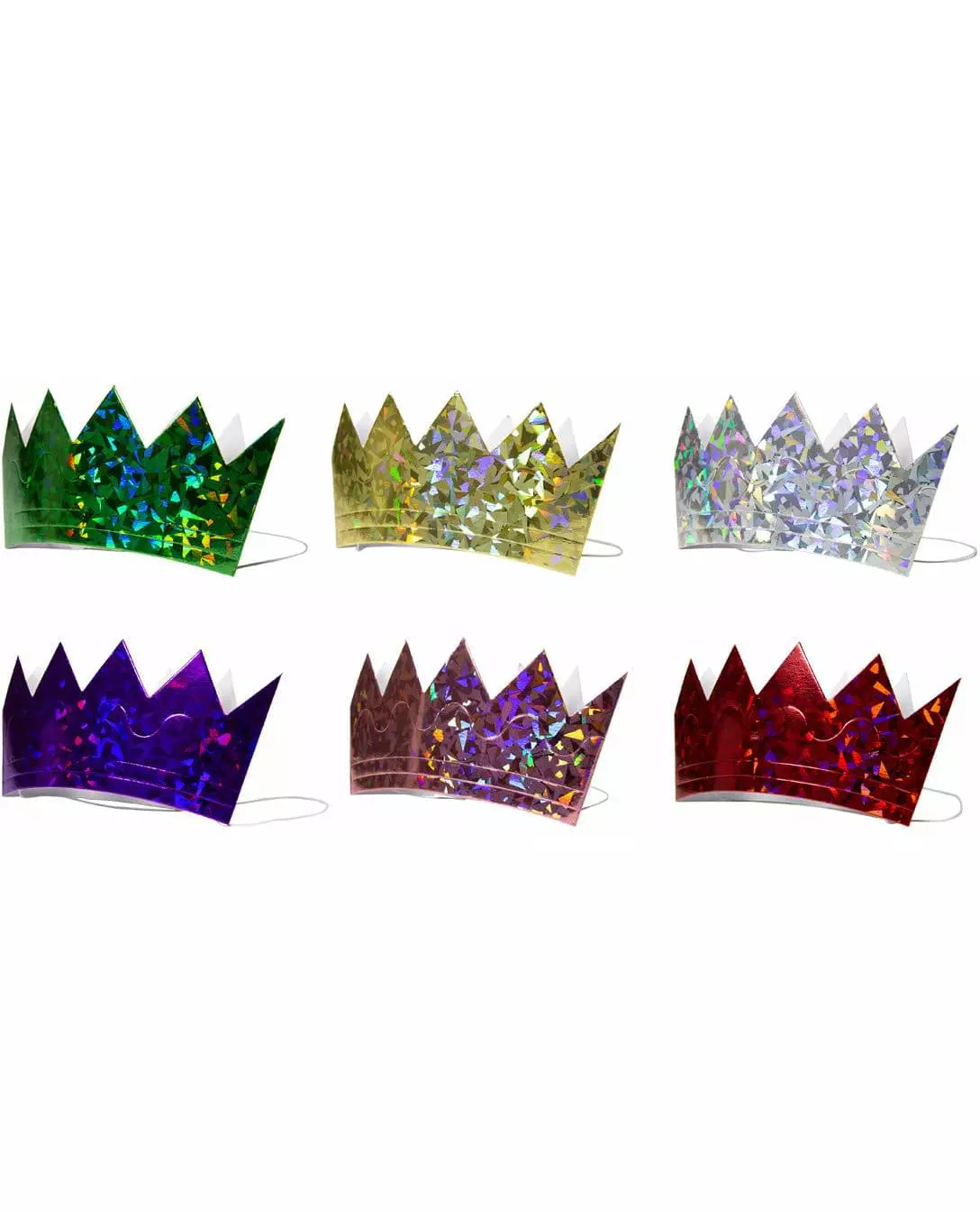 Dine prinsessetiaraer! Disse holografiske tiaraene selges i sett på 6. De er laget av papp med forskjellig farge for hver tiara: rød, grønn, grå, gul, lilla og blå. De festes med en strikk på baksiden av tiaraen. Dette settet vil være perfekt for en prinsessebursdagsfest! Inkludert tilbehør: 6 tiaraer Materiale: Papp
