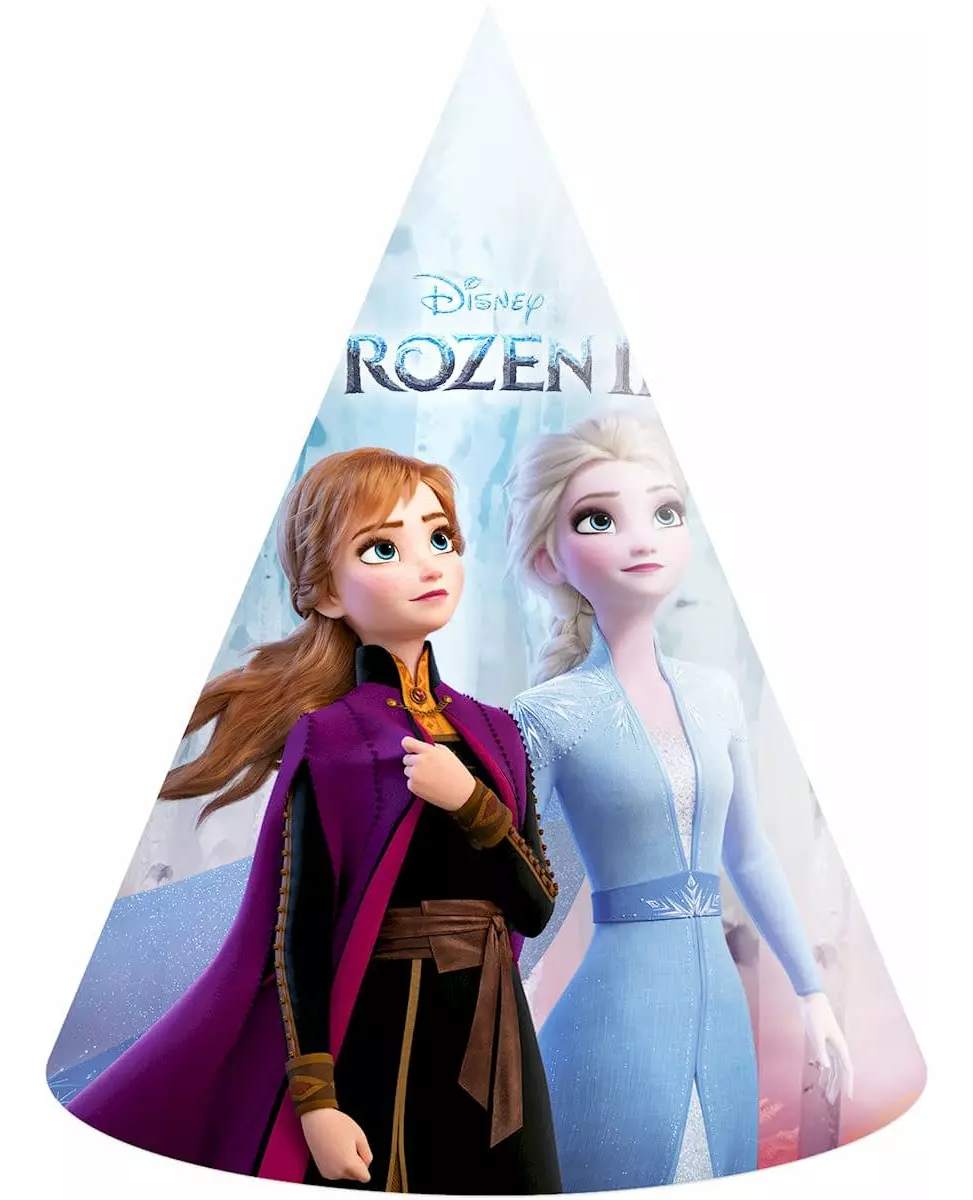 Festhatter til en Frost 2™-bursdag! Disse offisielt lisensierte Frost 2™-festhattene kommer i en pakke med 6. De er laget av papp. De har et bilde av prinsessene Elsa og Anna. Velg disse festhattene til datteren din sin Frost 2™-temabursdag. Inkludert tilbehør: 6 festhatter Materiale: Papp