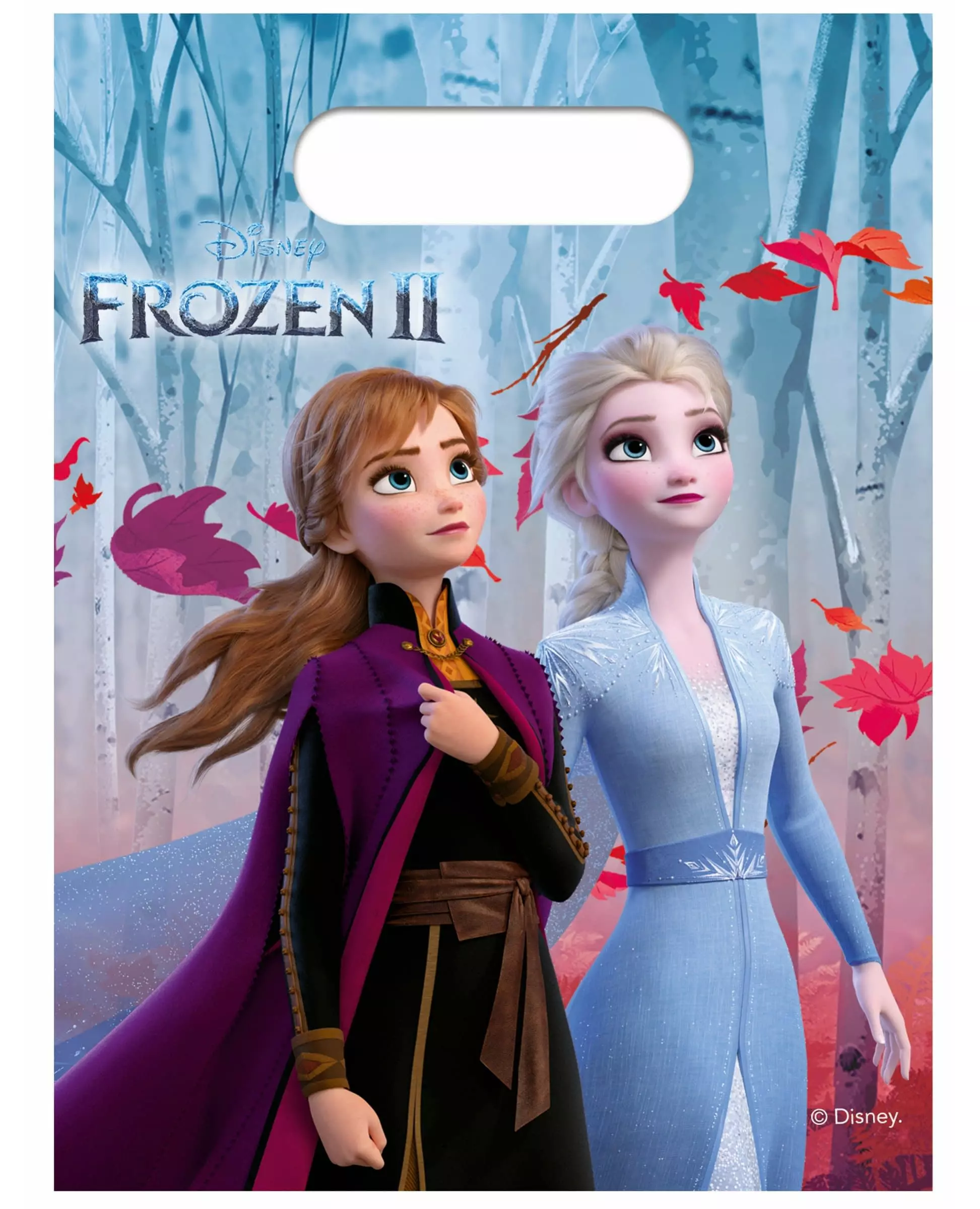 Frost 2™ bursdagsfestgaveposer! Disse offisielt lisensierte Frost 2™ festgaveposene selges i pakker på 6. De er laget av plast. De måler omtrent 23 x 16,5 cm. Posene har Elsa og Anna mot en blå skogbakgrunn. Fyll disse gaveposene med små leker og godteri som du kan gi til datterens bursdagsfestgjester med Frost 2™-tema! Inkludert tilbehør: 6 gaveposer Materiale: Plast