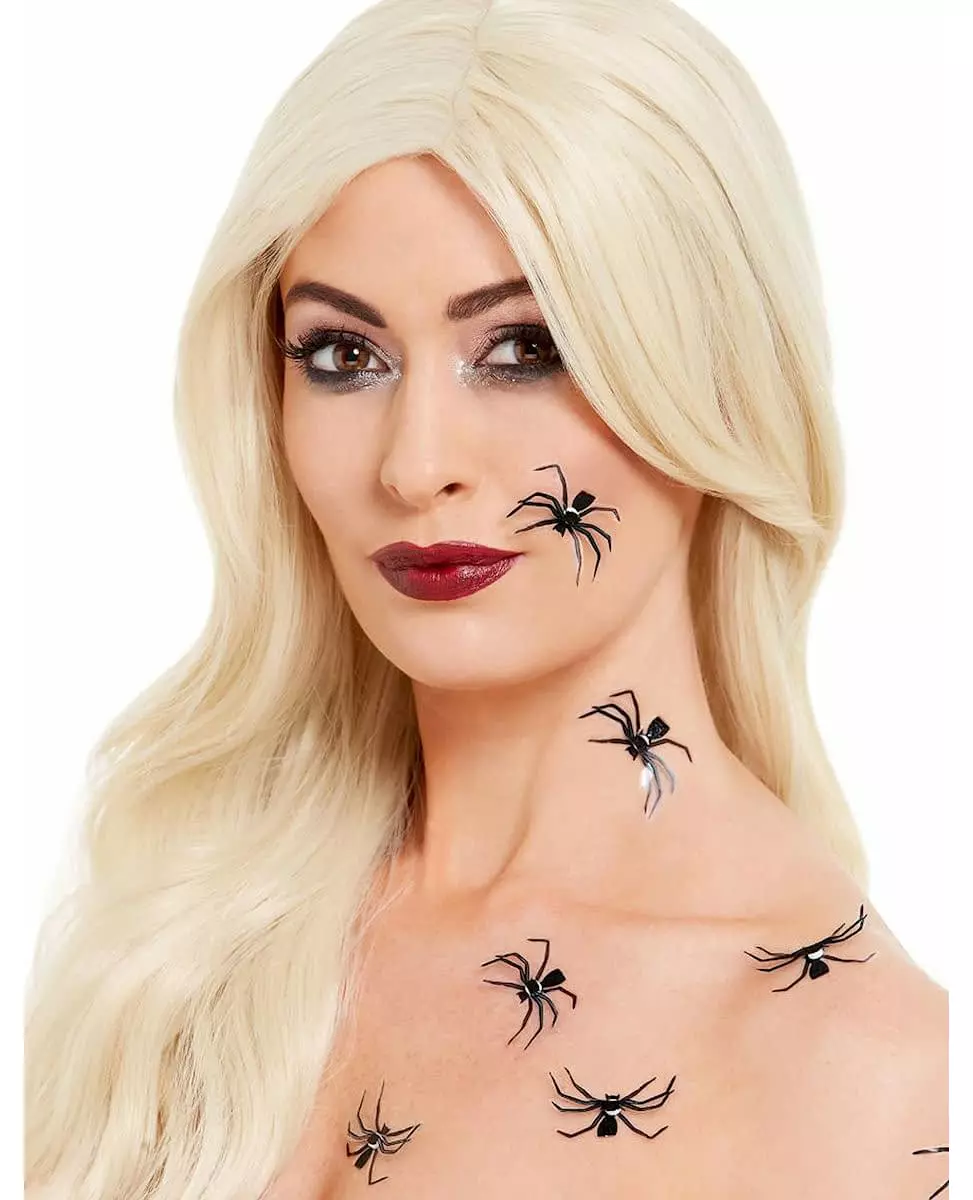 Tem edderkoppene med dette Halloween-sminkesettet. Dette settet består av 6 klistremerker. Disse forestiller svarte edderkopper, som skal påføres direkte på huden. Med dette edderkoppsminkesettet blir du den største heksen til Halloween! Materiale: Akrylater/VA-kopolymer. Tilbehør inkludert - 6 klistremerker til edderkopper.
