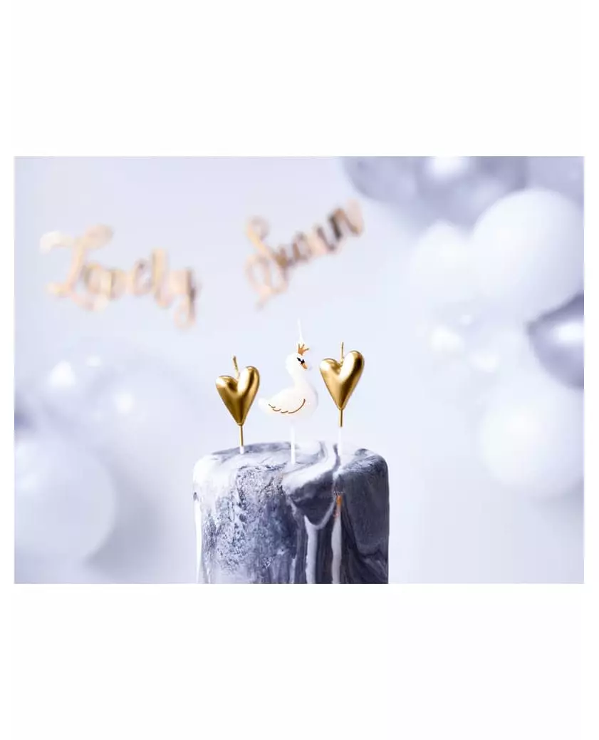 6 lys på en hakke med svaner og hvite og gullhjerter 3,5 - 4 cm