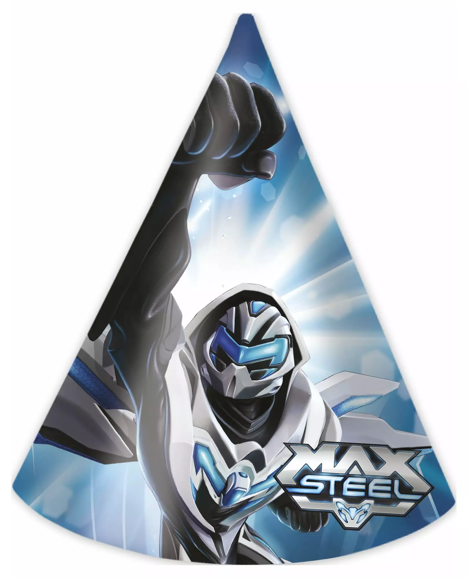 Fest med Max Steel™! Disse 6 hattene er offisielt lisensiert av Max Steel™. Akkurat som superhelten har disse papphattene en liten hvit strikk. Barn vil bli glade for å bruke disse festhattene på sønnens bursdagsfest med hans favoritttegneserietema. Inkludert tilbehør: 6 hatter Materiale: Papp