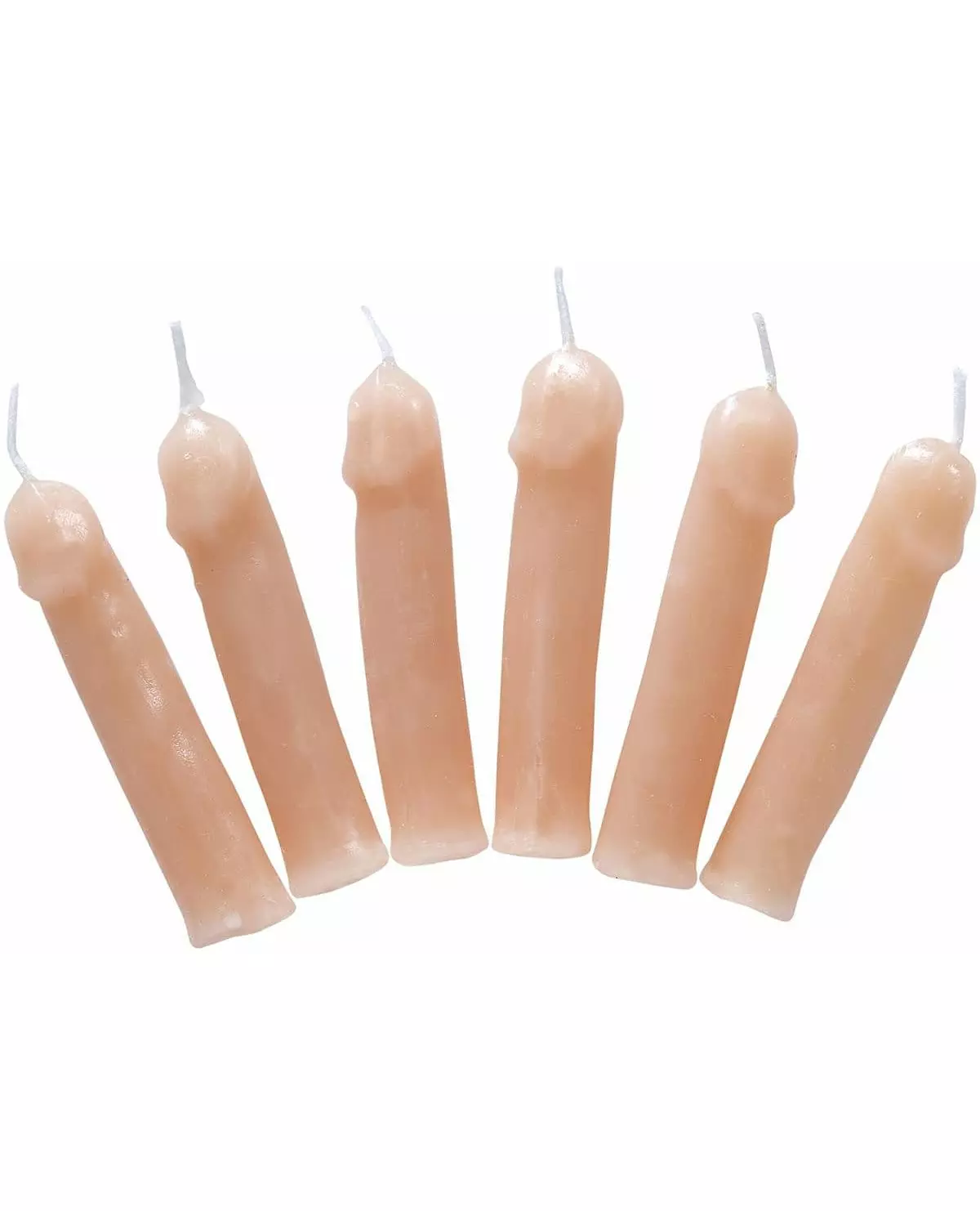 Sett med 6! Dette settet inneholder 6 penisformede lys. De måler omtrent 7,5 cm i høyden med veke og 6,5 cm uten veke, med en diameter på omtrent 1 cm. De vil være ideelle for å dekorere en dessert på et utdrikningslag. Copyright Widmann SRL. Inkludert tilbehør: 6 lys