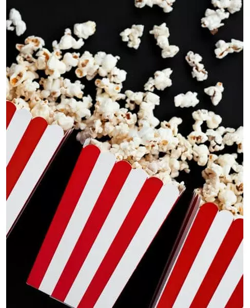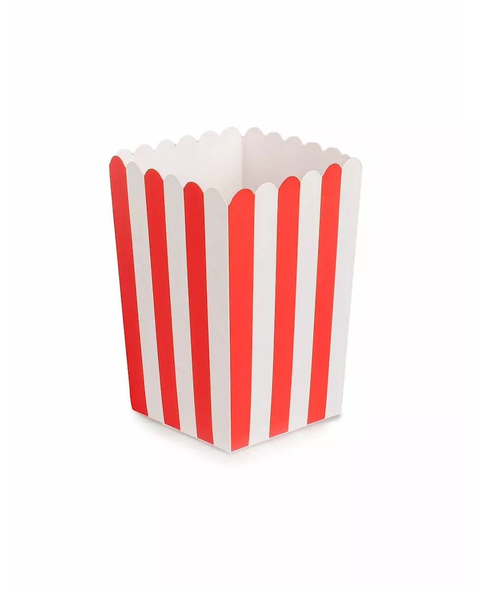 6 røde og hvite popcornbokser i papp, 7 x 12,5 cm