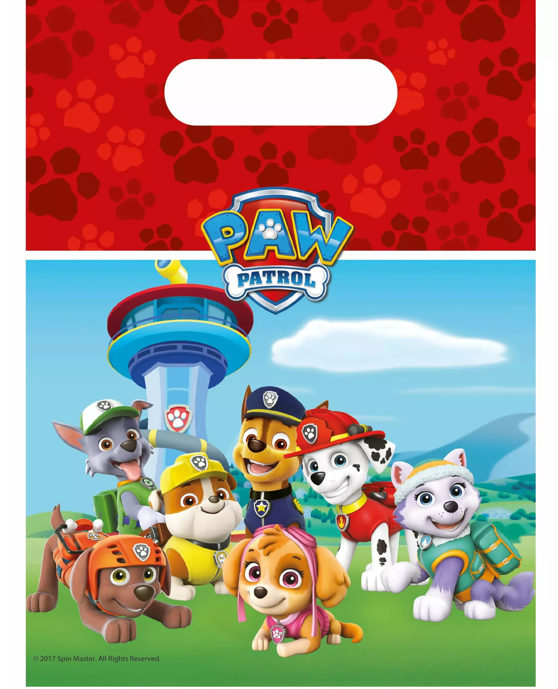 Fine poser å fylle og gi bort! Dette settet består av 6 offisielt lisensierte Paw Patrol-gaveposer. Disse posene er laget av plast og måler omtrent 23 x 16,5 cm. På disse posene finner du trykk av de berømte Paw Patrol-hundene (Chase, Marcus, Rubble, Rocky, Zuma, Stella og Everest). Fyll disse posene med godbiter og små gaver du kan gi til gjestene dine til barnets Paw Patrol™-temabursdagsfest!. Inkludert tilbehør: 6 gaveposer Materiale: Plast