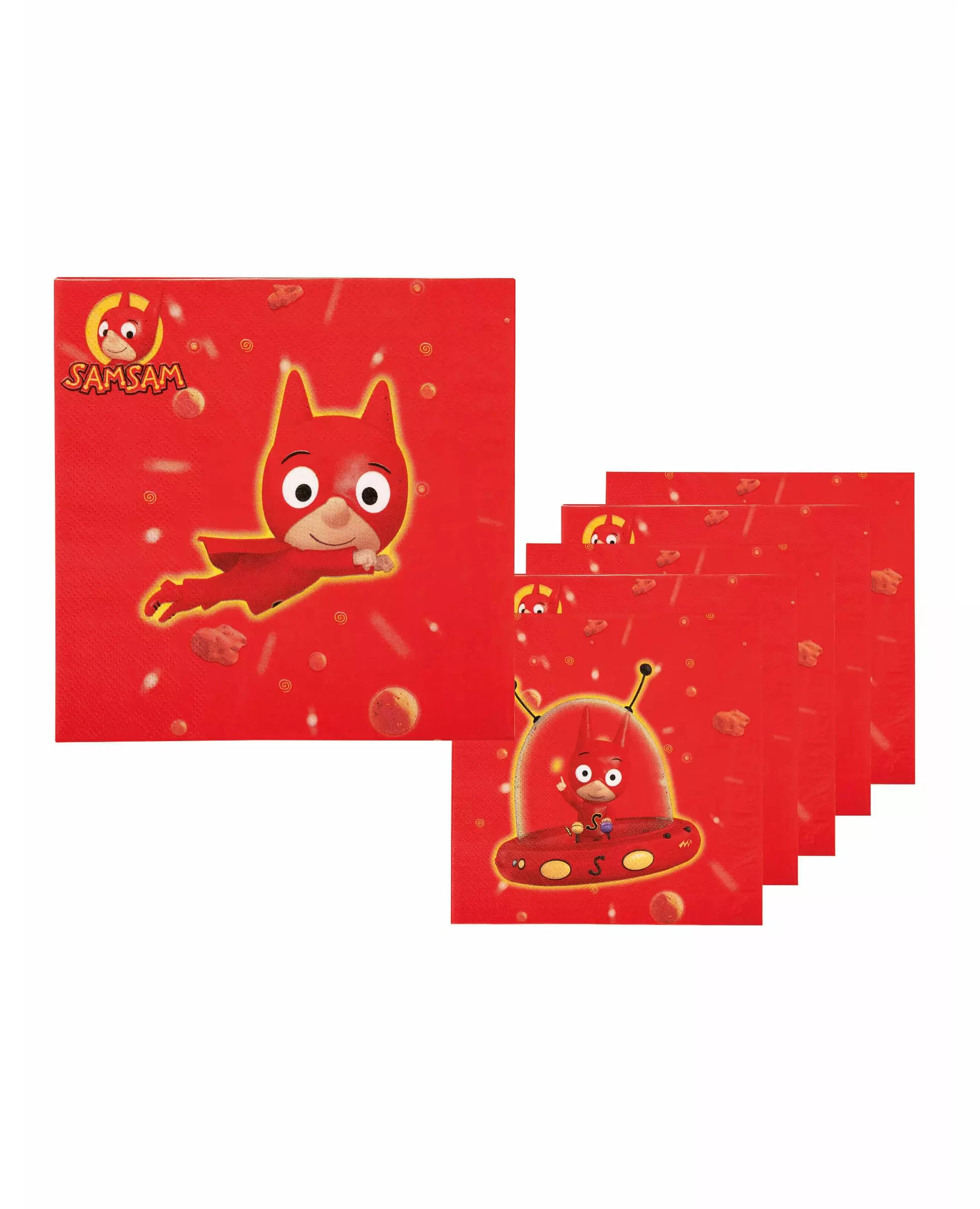 Bli med på en SamSam-bursdag! Dette settet består av 6 offisielt lisensierte SamSam®-servietter. De måler omtrent 33 x 33 cm når de er utbrettet. De er laget av papir, er røde og representerer den lille helten SamSam i tallerkenen sin eller flyvende. Disse SamSam-serviettene vil være perfekte til den lille guttens bursdag! Inkludert tilbehør: 6 servietter Materiale: Papir