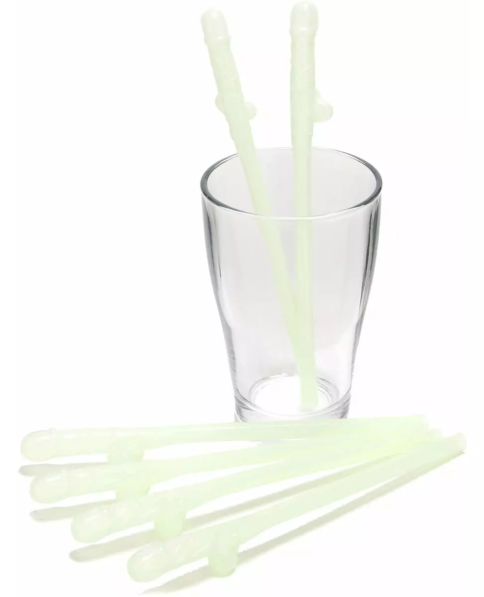 Frisk opp cocktailene dine! Dette settet består av 6 lekne, fosforescerende plastsugerør. Disse er omtrent 19 cm lange og har penisformede ender. Disse sugerørene vil være perfekte for å krydre aperitiffen din til et utdrikningslag. Copyright Widmann SRL. Inkludert tilbehør: 6 sugerør