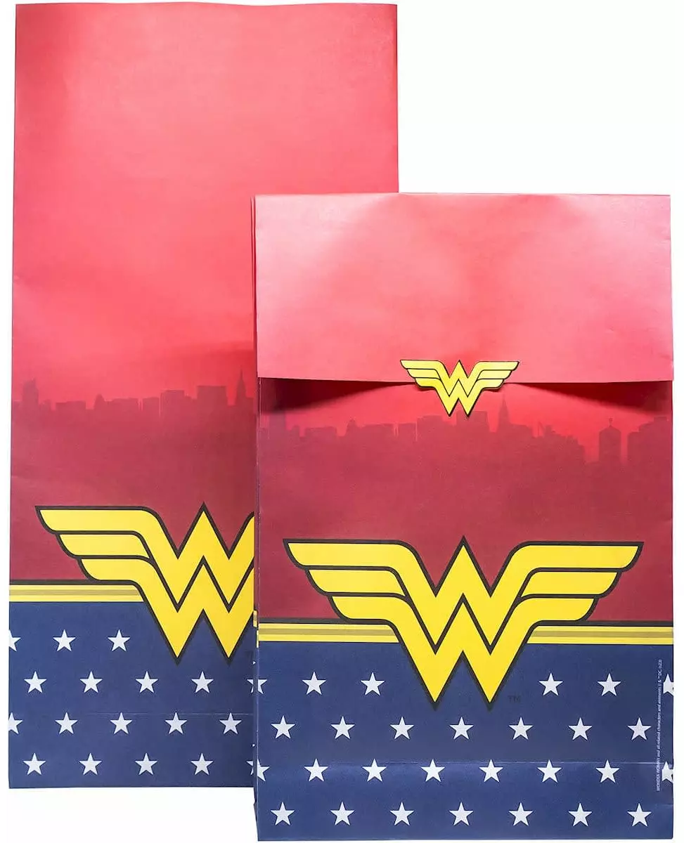 Ta makten! Denne pakken er offisielt lisensiert av Wonder Woman™ og inneholder 8 gaveposer. Laget av kraftpapir og leveres med 8 selvklebende klistremerker. Posene måler omtrent 30 x 15 cm, og klistremerkene har den ikoniske Wonder Woman™-logoen. Figurens design er også trykt direkte på hver pose. Disse gaveposene vil være ideelle for å perfeksjonere dekorasjonen din på en Wonder Woman™-tema bursdagsfest! Inkludert tilbehør: 8 gaveposer