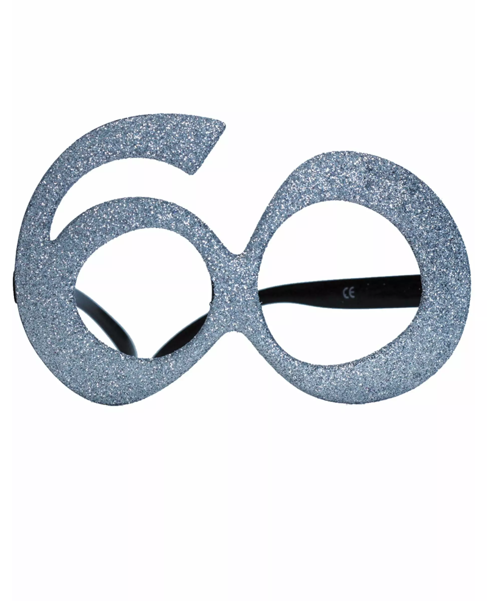 Glitterbriller til 60-årsdag Gratulerer med dagen. Disse plastbrillene representerer tallet 60, som hentyder til alderen 60.