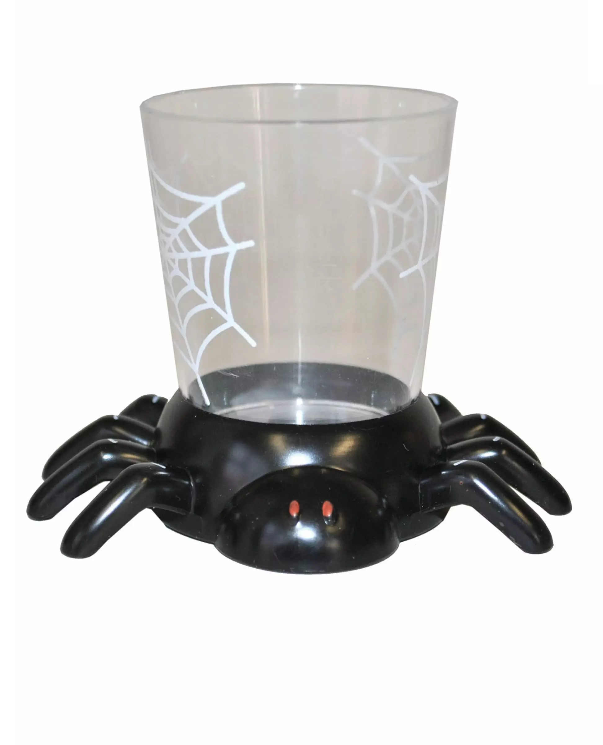 Dekk et skummelt bord til Halloween. Denne Halloween-edderkoppkoppen er laget av plast. Den forestiller en svart edderkopp som holder en gjennomsiktig kopp med hvite spindelvev på ryggen. Den måler omtrent 7 cm. Denne koppen vil være perfekt for å fullføre borddekorasjonen din på Halloween-kvelden. Inkludert tilbehør: Kopp. Materiale: Plast.