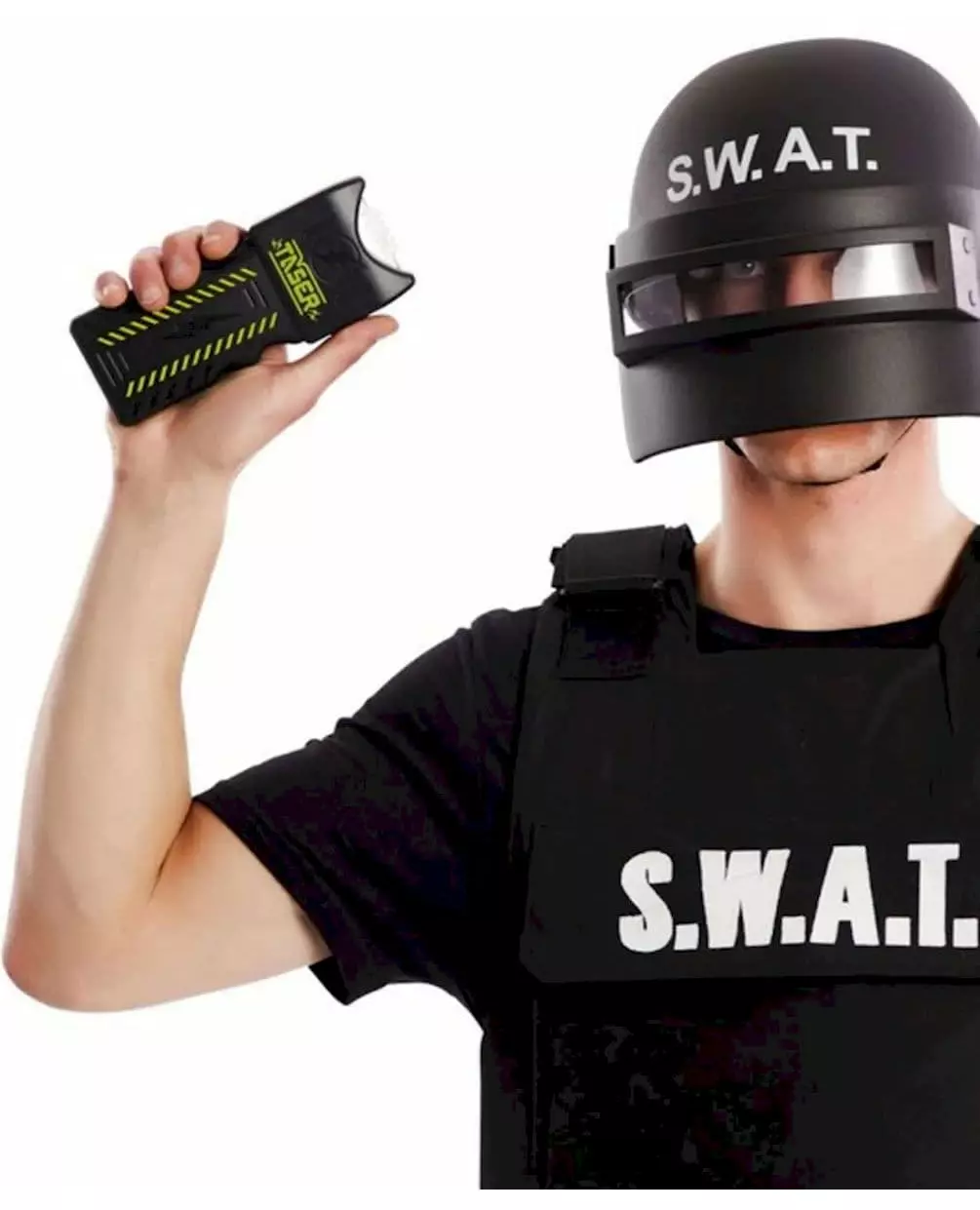 Atmosfæren er elektrisk! Denne taseren måler omtrent 7 cm. Den fungerer med batterier (inkludert). Dette tilbehøret vil være perfekt for å fullføre politibetjentkostymet ditt for en uniformkveld. Materiale: PVC Vedlikehold: Håndvask