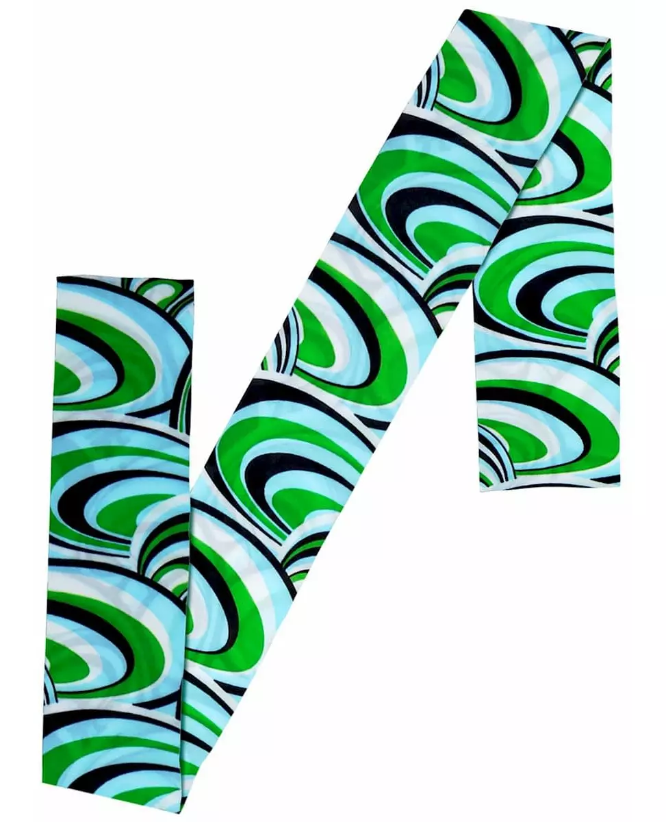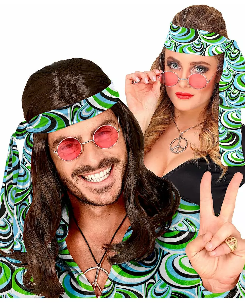 Til kostymet ditt, hent ideer fra 70-tallet. Dette 70-tallspannebåndet for voksne er laget av et bølgete stoff. Det er svart, hvitt, grønt og blått. For å bruke det, knyt det bare rundt hodet. Dette fargerike pannebåndet vil være perfekt for å fullføre disco- eller hippiekostymet ditt til karneval. Inkludert tilbehør: Pannebånd Materiale: 100 % polyester Vedlikehold: Håndvask
