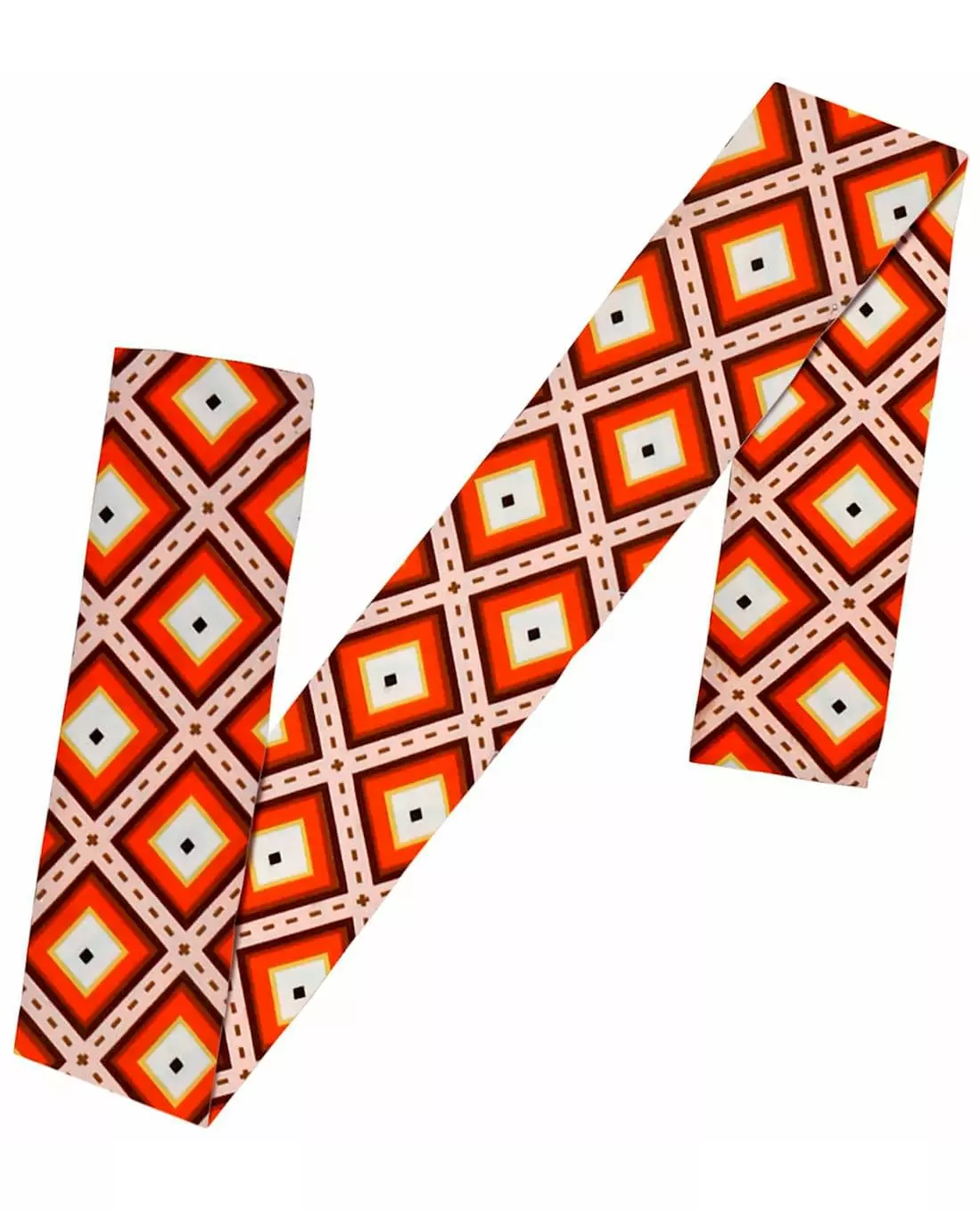 Ta deg tilbake til 70-tallet og pynt deg med dette pannebåndet. Dette pannebåndet for voksne er lyst, med diamanttrykk i nyanser av gult og oransje. Det knytes enkelt rundt hodet. Dette pannebåndet vil være perfekt for å fullføre et hippie- eller discokostyme til karneval. Inkludert tilbehør: Pannebånd Materiale: 100 % polyester Vedlikehold: Håndvask