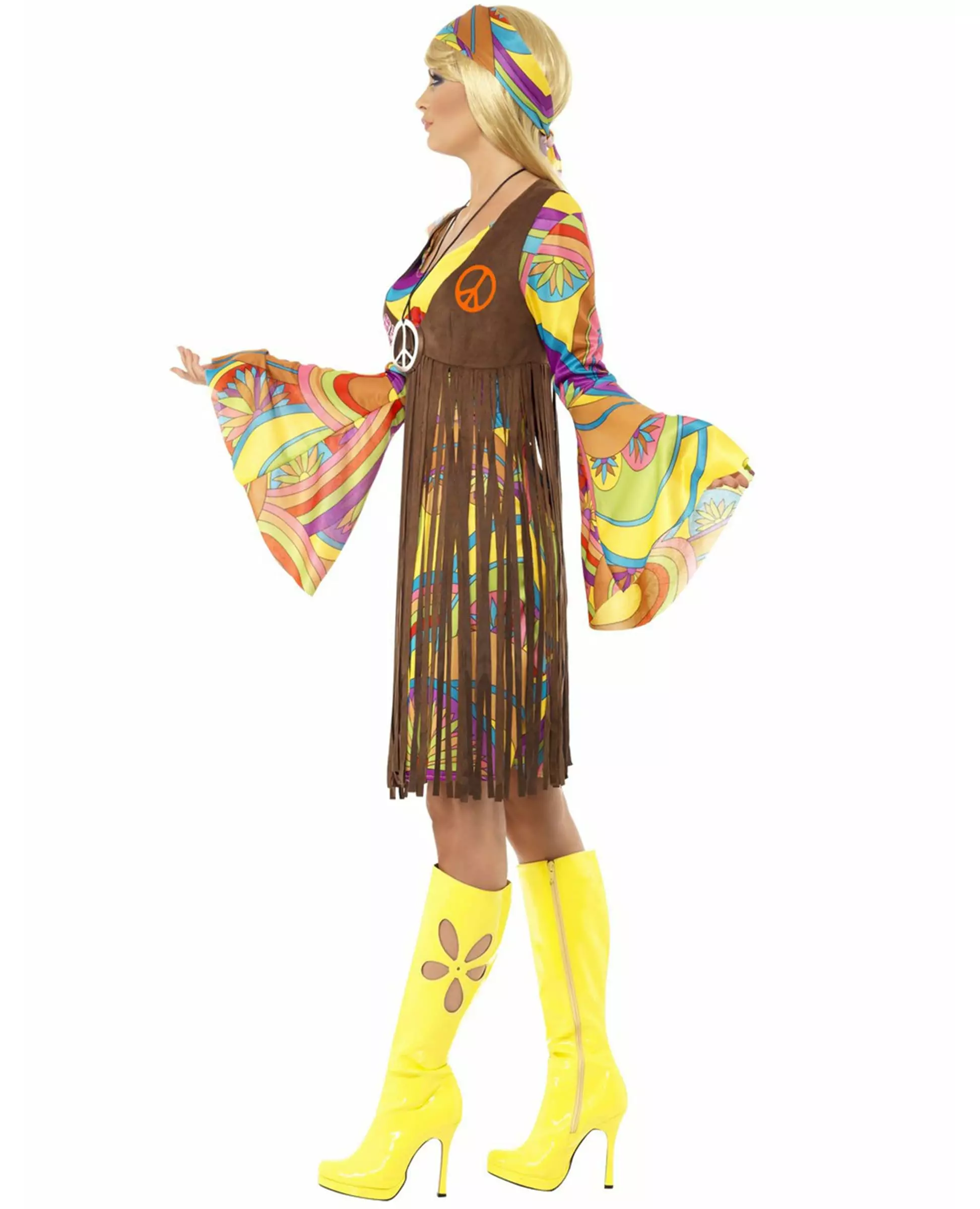 Bli fullstendig hippie! Dette hippiekostymet for kvinner består av en fargerik blomsterkjole, en frynsete vest som kan brukes over kjolen og et pannebånd. De utsvingte ermene vil representere 70-tallsstilen perfekt, og realismen i dette kostymet vil forføre deg fullstendig. Dette settet lar deg sette deg inn i skoene til en kvinne fra denne berømte epoken. Blomsterhippiekostymet for kvinner er ideelt for alle dine retro-temafester. Inkludert tilbehør: Kjolevest Pannebånd Materiale: Polyester Stell: Håndvask
