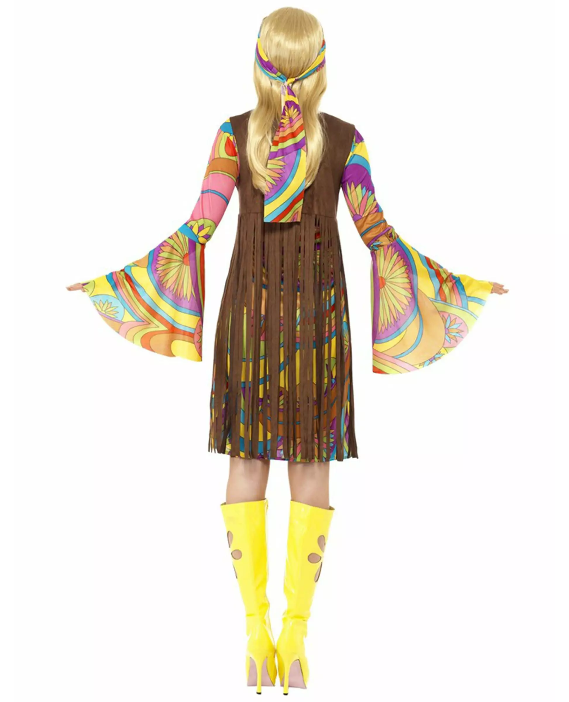 Bli fullstendig hippie! Dette hippiekostymet for kvinner består av en fargerik blomsterkjole, en frynsete vest som kan brukes over kjolen og et pannebånd. De utsvingte ermene vil representere 70-tallsstilen perfekt, og realismen i dette kostymet vil forføre deg fullstendig. Dette settet lar deg sette deg inn i skoene til en kvinne fra denne berømte epoken. Blomsterhippiekostymet for kvinner er ideelt for alle dine retro-temafester. Inkludert tilbehør: Kjolevest Pannebånd Materiale: Polyester Stell: Håndvask