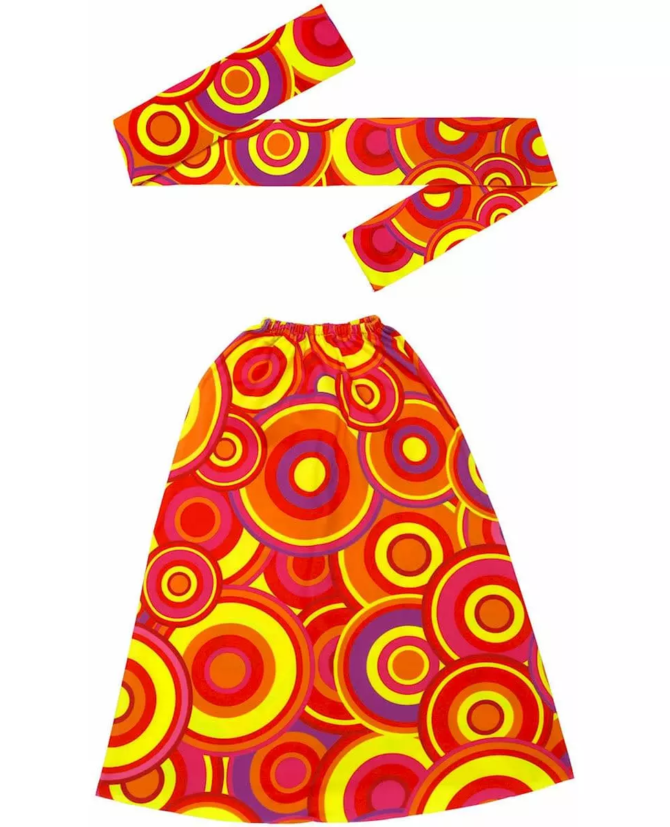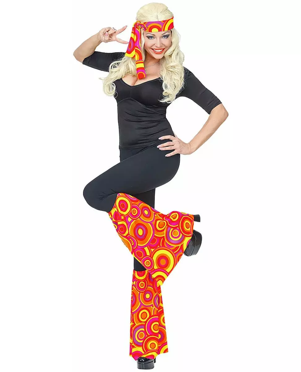 Til ditt 70-tallskostyme, gå all in med farger! Dette 70-tallssettet for voksne består av et pannebånd og et par leggvarmere (kun dette tilbehøret er inkludert). Settet er laget av samme stoff, med fargerike runde mønstre. Det er laget i varme farger: rød, oransje, gul... Pannebåndet knytes enkelt rundt hodet. Leggvarmerne er elastiske for å passe leggene, og har et utsvingt snitt. Dette settet vil være perfekt for å legge farge på disco- eller hippiekostymet ditt til en retrofest. Inkludert tilbehør: Pannebånd 2 leggvarmere Materiale: 100 % polyester Vedlikehold: Håndvask