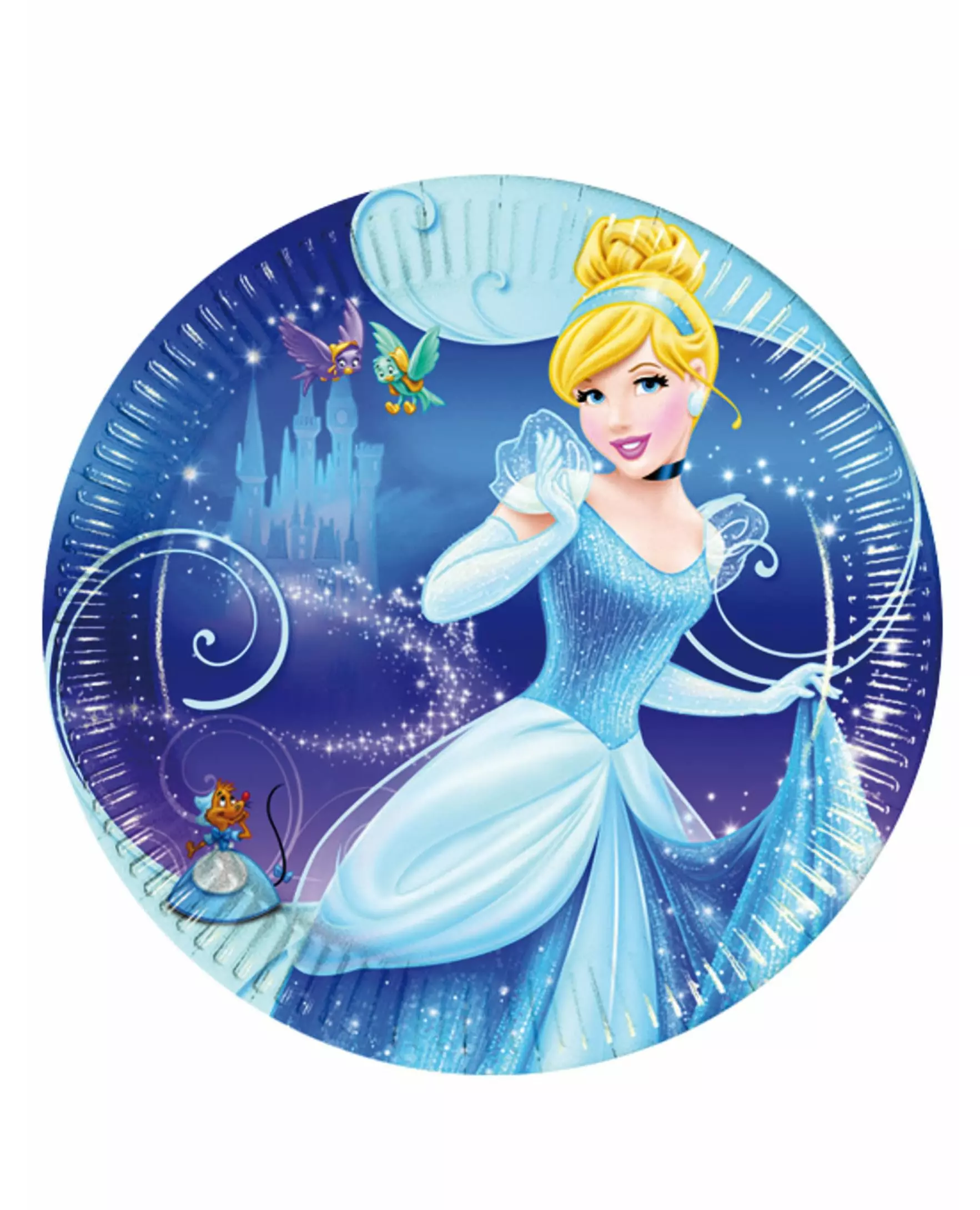 Livets drøm er kjærlighet! Dette offisielt lisensierte Askepott-settet inneholder 8 tallerkener. De er laget av papp og måler omtrent 19 cm i diameter. De er dekorert med den vakre prinsesse Askepott i sin praktfulle ballkjole. I det fjerne kan vi se Prins Charmings slott. Fugle- og musevennene hennes er også til stede i designet. Disse engangstallerkenene vil være uunnværlige for datterens Askepott-bursdagsfest! Inkludert tilbehør: 8 tallerkener Materiale: Papp