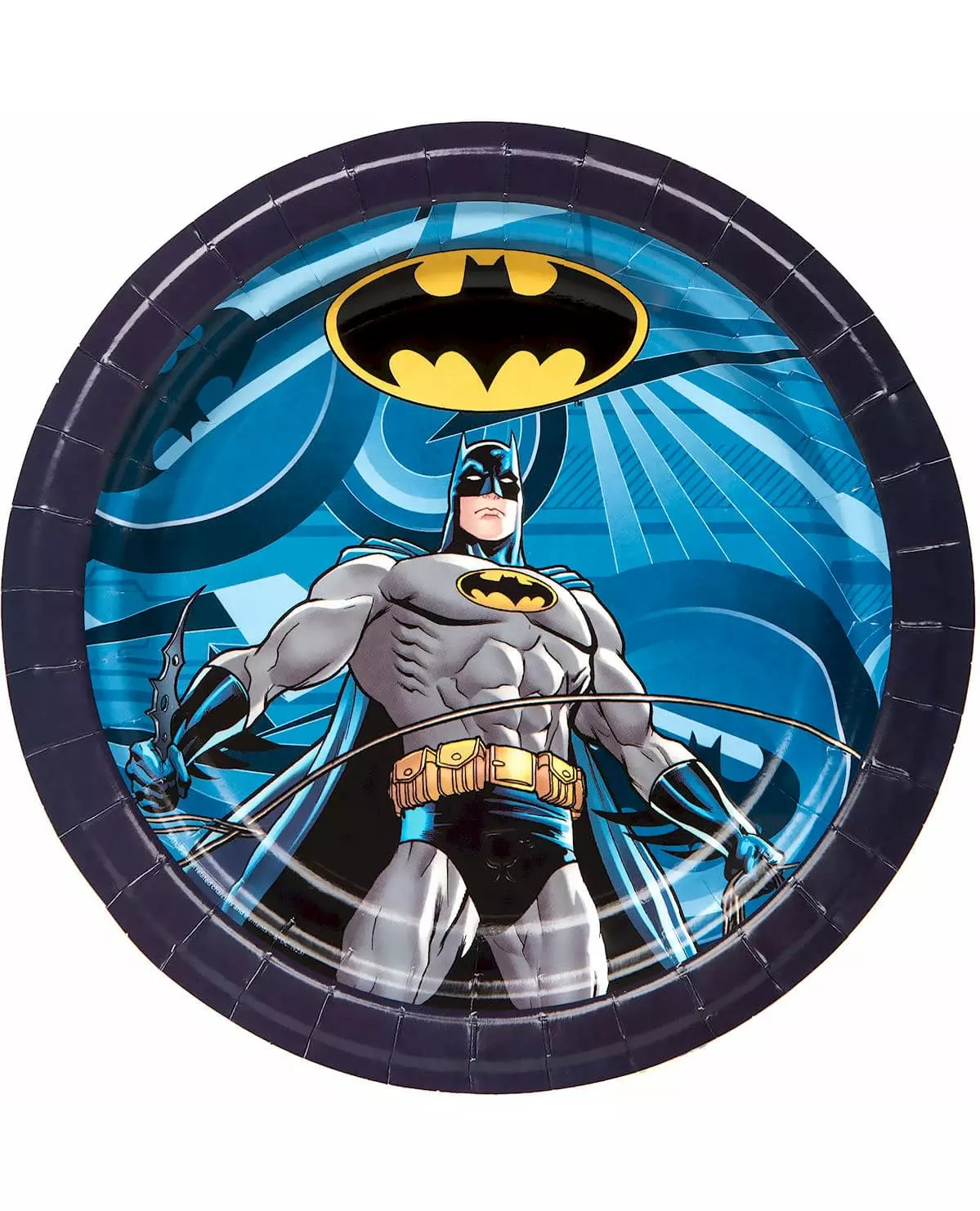 Den mørke ridderen kommer hjem til deg! Disse papptallerkenene er offisielt lisensiert av Batman®. De selges i pakker på 8. De måler omtrent 23 cm. De er trykket med bildet av Batman® og hans uforglemmelige logo! Fullfør sortimentet med andre produkter med samme tema. Disse tallerkenene vil være perfekte for å dekorere bordet ditt under en Batman®-temafest! Inkludert tilbehør: 8 tallerkener Materiale: Papp