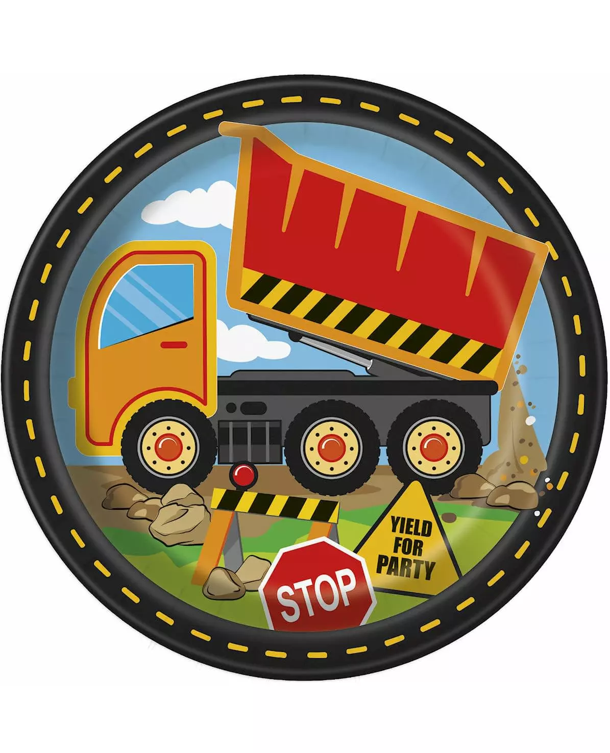 En byggeplass på tallerkenen din! Dette settet består av 8 papptallerkener. De måler omtrent 22 cm i diameter. En anleggsmaskin er representert med skilt, alle omgitt av en vei. Disse tallerkenene vil fullføre borddekorasjonen din til en byggeplassbursdag! Inkludert tilbehør: 8 tallerkener Materiale: Papp