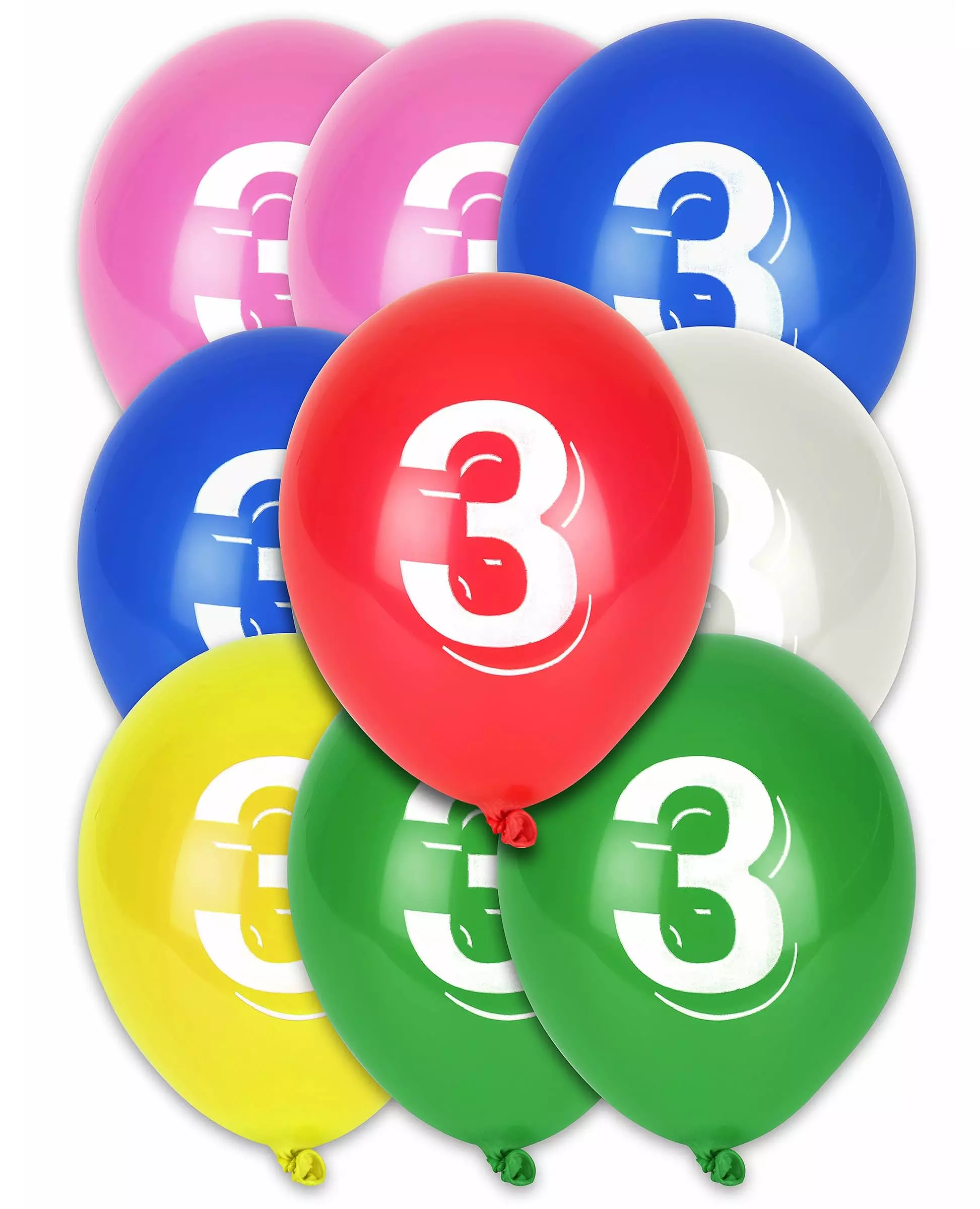 Ideelt for bursdager! Dette settet består av 8 tallballonger i gummi i forskjellige farger. Tallet 3 er på ballongene. De vil være perfekte for å skape en fargerik atmosfære i for eksempel en barnebursdag! Inkludert tilbehør: 8 ballonger Materiale: Lateks