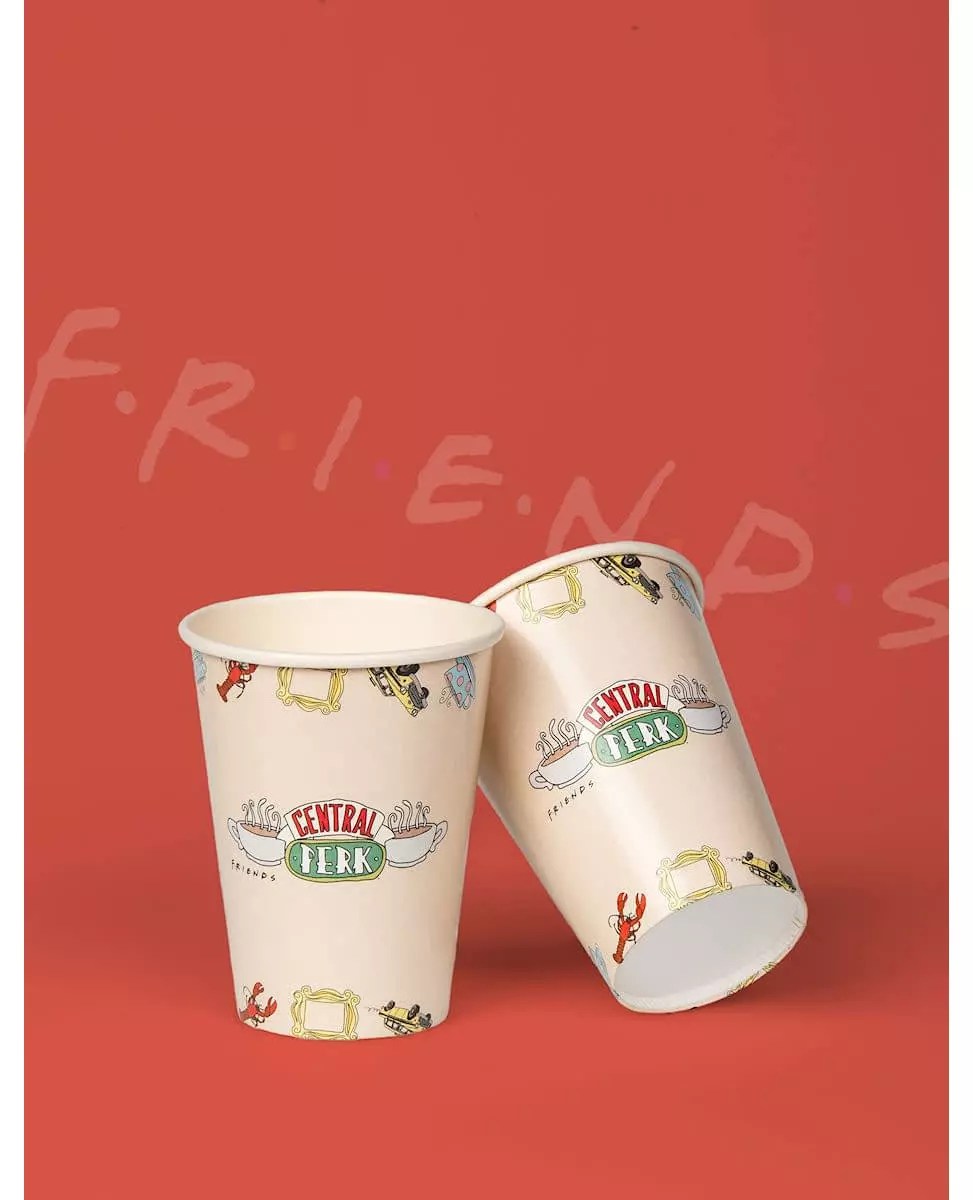 Så ingen fortalte deg at livet kom til å bli slik ...! Dette settet inneholder 8 offisielt lisensierte Friends™-pappkopper. De har en kapasitet på omtrent 210 ml. De er dekorert med forskjellige design relatert til Friends-universet, for eksempel den berømte hummeren eller logoen til det berømte Friends-møtestedet, Central Perk. Fullfør disse koppene med tallerkener med samme tema for et komplett bord! Disse koppene vil være perfekte for en kveld med venner med Friends™-temaet! Inkludert tilbehør: 8 kopper Materiale: Papp