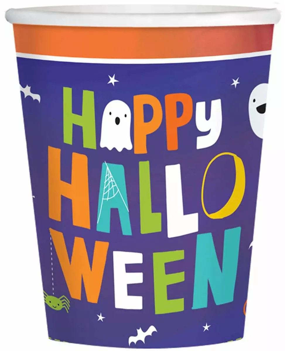 Halloween med venner! Disse 8 Halloween-venner-koppene er laget av papp og har en kapasitet på omtrent 250 ml. De har en lilla bakgrunn med en oransje kant i røde nyanser. De har påskriften «Happy Halloween» i forskjellige sterke farger og har Halloween-trykk som flaggermusen, spøkelset og edderkoppen. Dekk et fargerikt bord til Halloween med disse Halloween-venner-koppene! Inkludert tilbehør: 8 kopper Materiale: Papp