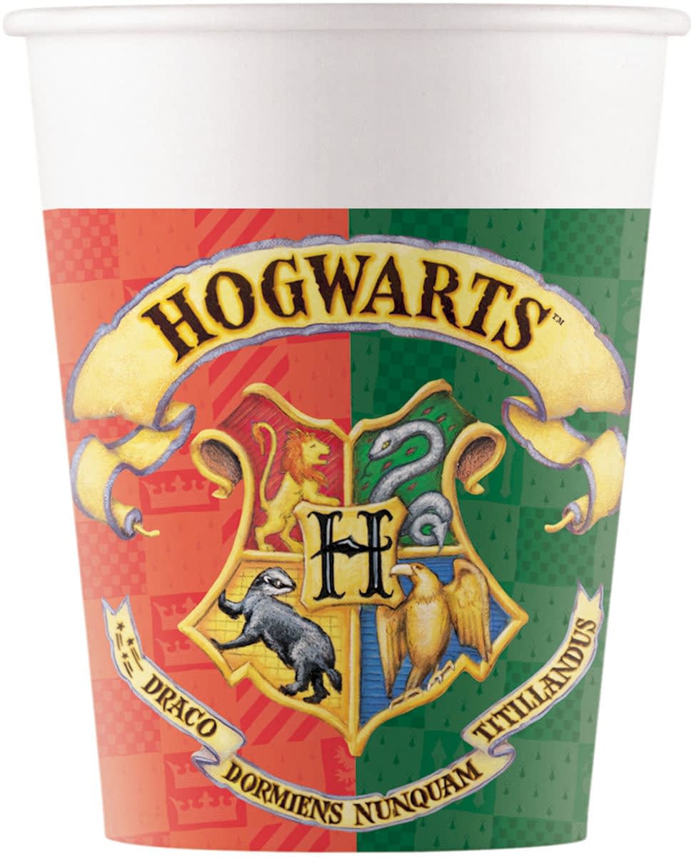 Bli med Galtvort på bursdagsfest! Dette settet består av 8 offisielt lisensierte Harry Potter™-pappkopper. De er trykket med Galtvorts-våpenskjold og skolens fire hus: Håsblås, Ravnklo, Slytherin og det berømte Harry Potter™-huset Griffing. Koppene har inskripsjonen «Galtvort», som er navnet på Galtvort på engelsk, og mottoet «Draco dormiens nunquam titillandus», som betyr «ikke kil en sovende drage». Disse koppene har en kapasitet på 20 cl. Dette settet med Harry Potter™-kopper vil bringe magi til ditt Harry Potter™-tema bursdagsbord!. Inkludert tilbehør: 8 kopper Materiale: Papp