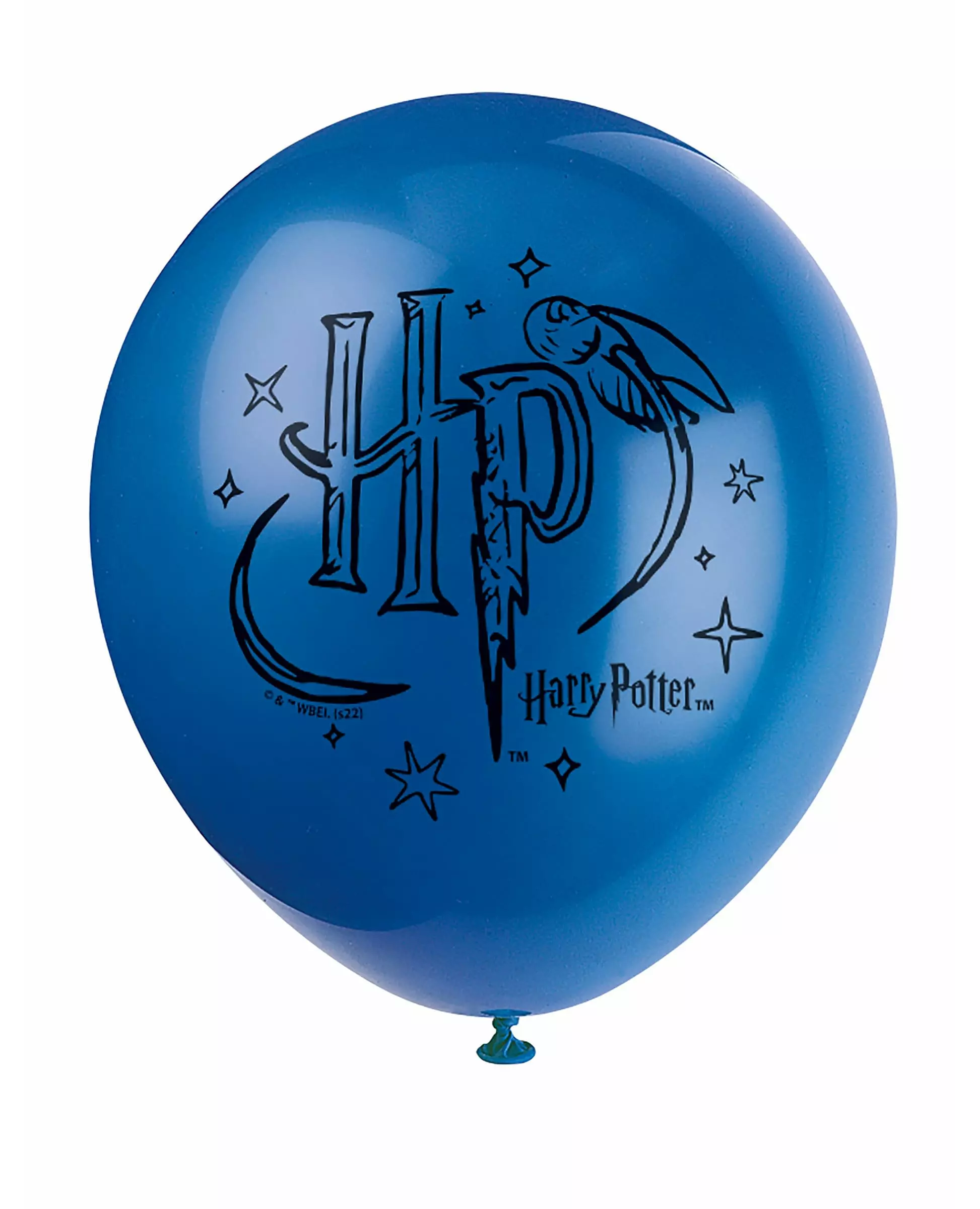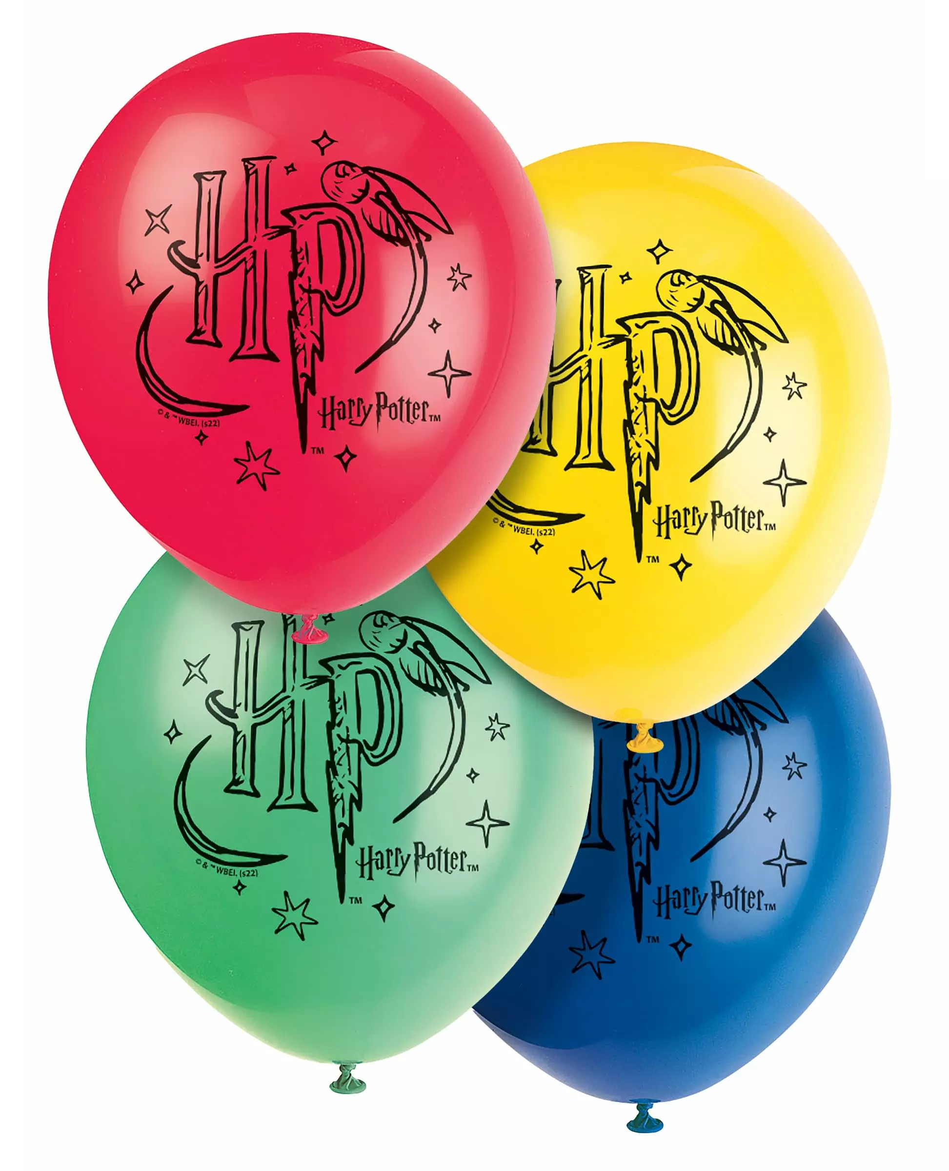 Sett Galtvort i søkelyset med disse ballongene. Dette settet består av 8 offisielt lisensierte Harry Potter™-lateksballonger. De måler omtrent 30 cm når de er oppblåst. Disse ballongene er trykket med initialene HP (Harry Potter). De er gule, burgunder, grønne og blå, som tilsvarer fargene på de fire husene. Disse ballongene vil være perfekte for å fullføre dekorasjonen din til en Harry Potter-bursdagsfest. Inkludert tilbehør: 8 ballonger. Materiale: Lateks.