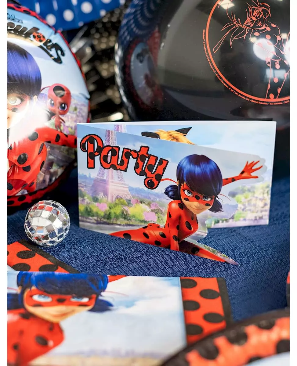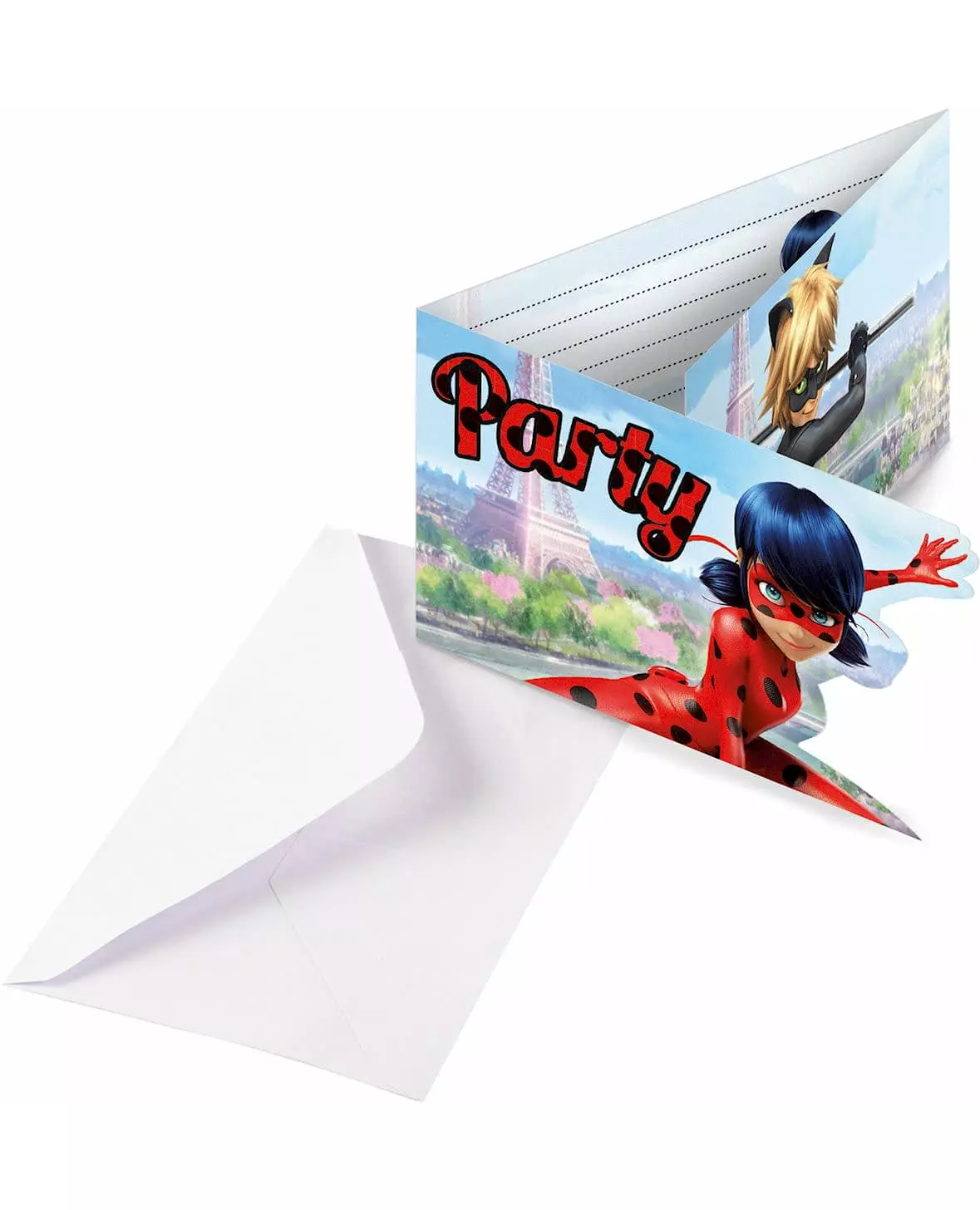 Organiser en marihøne-bursdagsfest! Disse offisielt lisensierte marihøne-invitasjonskortene selges i sett på 8. De er laget av papp og er dekorert med marihøne og katten Noir, de to superheltene fra Miraculous-tegnefilmen. De brettes i tre deler. Inni kan du skrive forskjellig informasjon, for eksempel sted for bursdagsfesten, dato, telefonnummeret ditt ... Disse invitasjonskortene leveres med en papirkonvolutt. Inviter alle datterens venner til bursdagsfesten hennes med disse marihøne-invitasjonskortene! Inkludert tilbehør: 8 invitasjonskort 8 konvolutter Materiale: Papir, papp