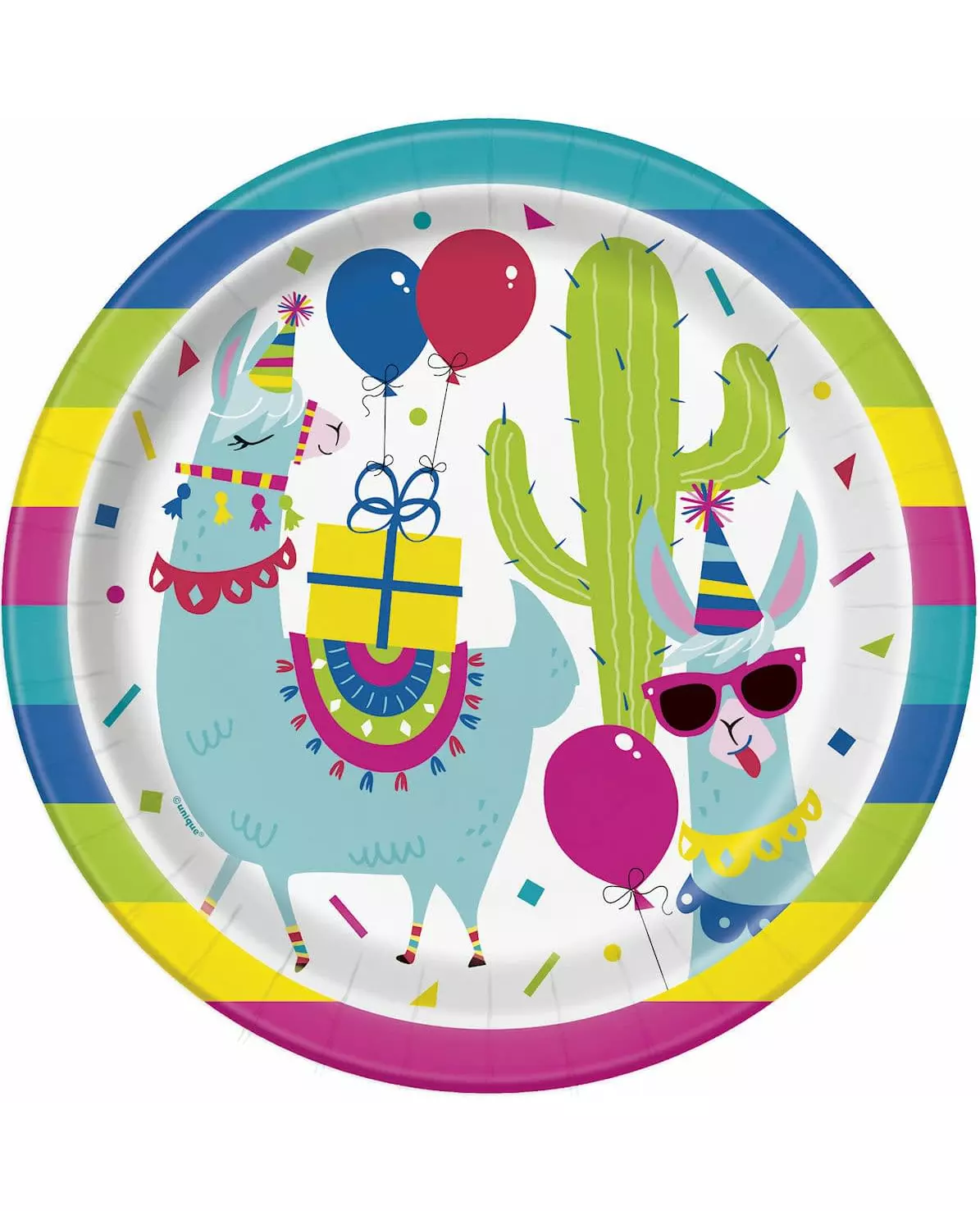 Inviter lamaene til bursdagen din med disse fargerike tallerkenene! Dette settet består av 8 papptallerkener. De er runde i formen og måler omtrent 22 cm i diameter. De har en flerfarget stripete kant, med lamaer som fester i midten. Disse tallerkenene vil være perfekte for å fullføre lama-tema-borddekorasjonen din. Inkludert tilbehør: 8 tallerkener Materiale: Papp