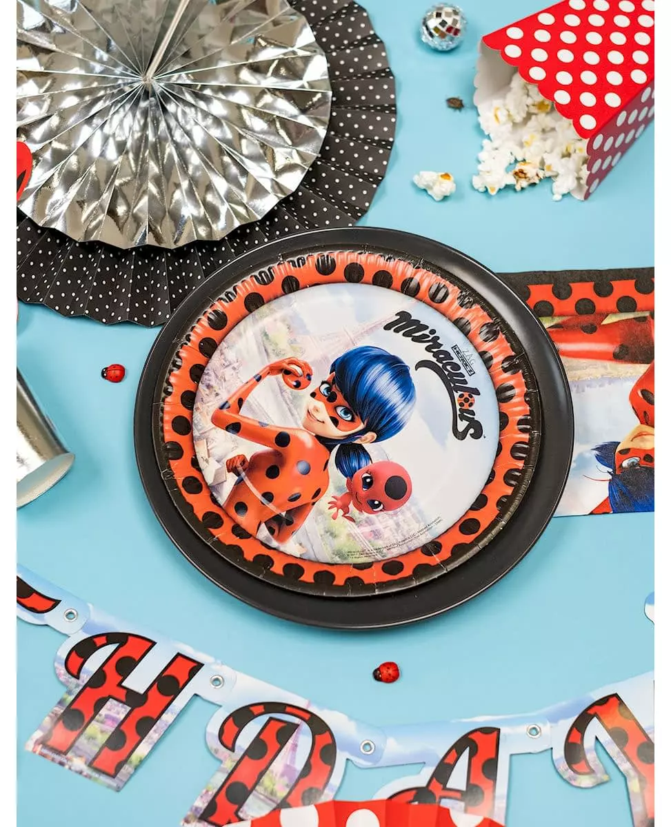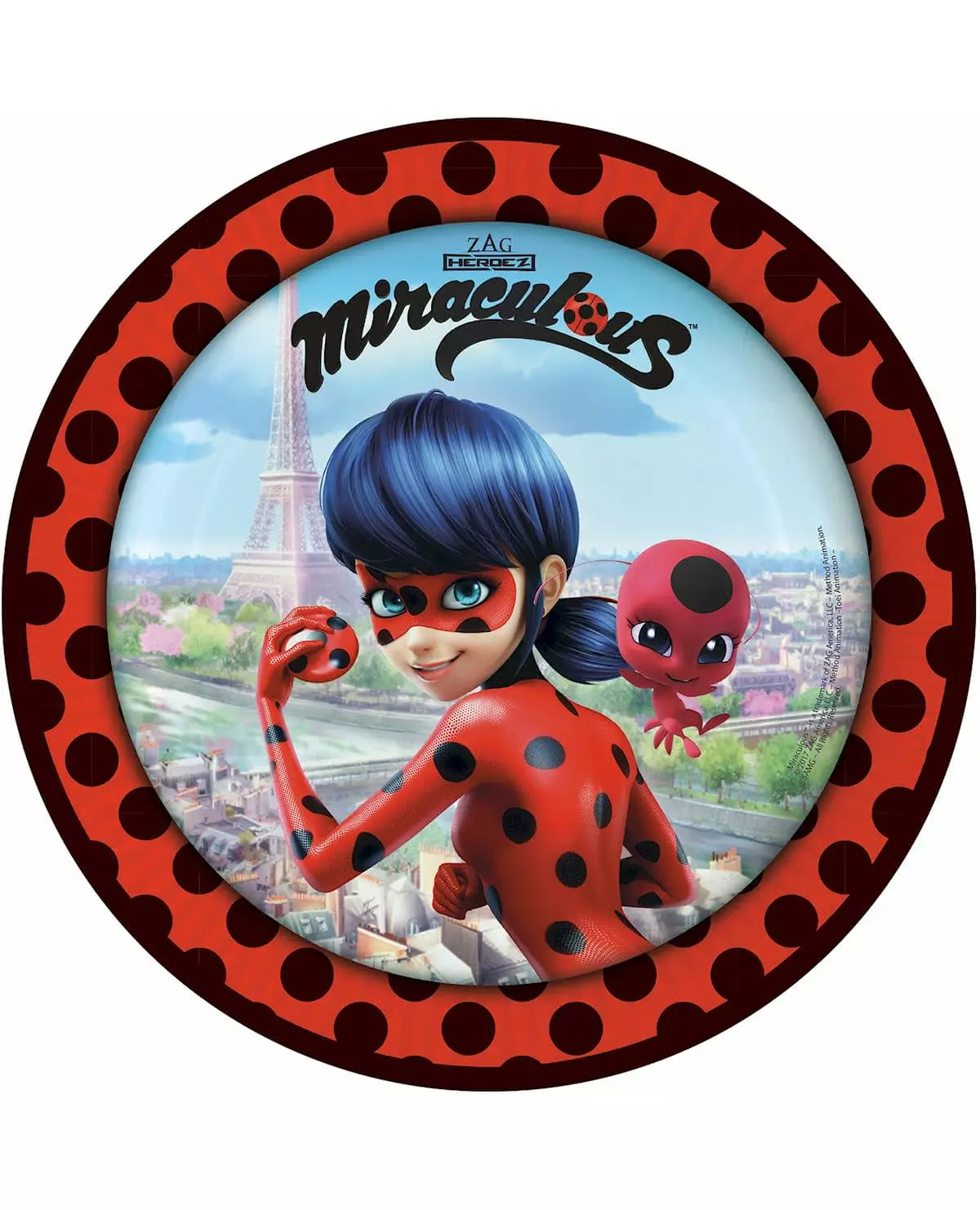 Kvitt byen din med superskurker! Dette settet inneholder 8 offisielt lisensierte Miraculous ™ papptallerkener. De har en diameter på omtrent 23 cm. De er dekorert med marihøne og Tikki, hennes kwami, foran byen Paris. Omrisset er rødt med svarte prikker som minner om marihøna. Disse engangstallerkenene vil være perfekte for å fullføre bordet på datterens Miraculous ™ bursdagsfest!. Inkludert tilbehør: 8 tallerkener Materiale: Papp