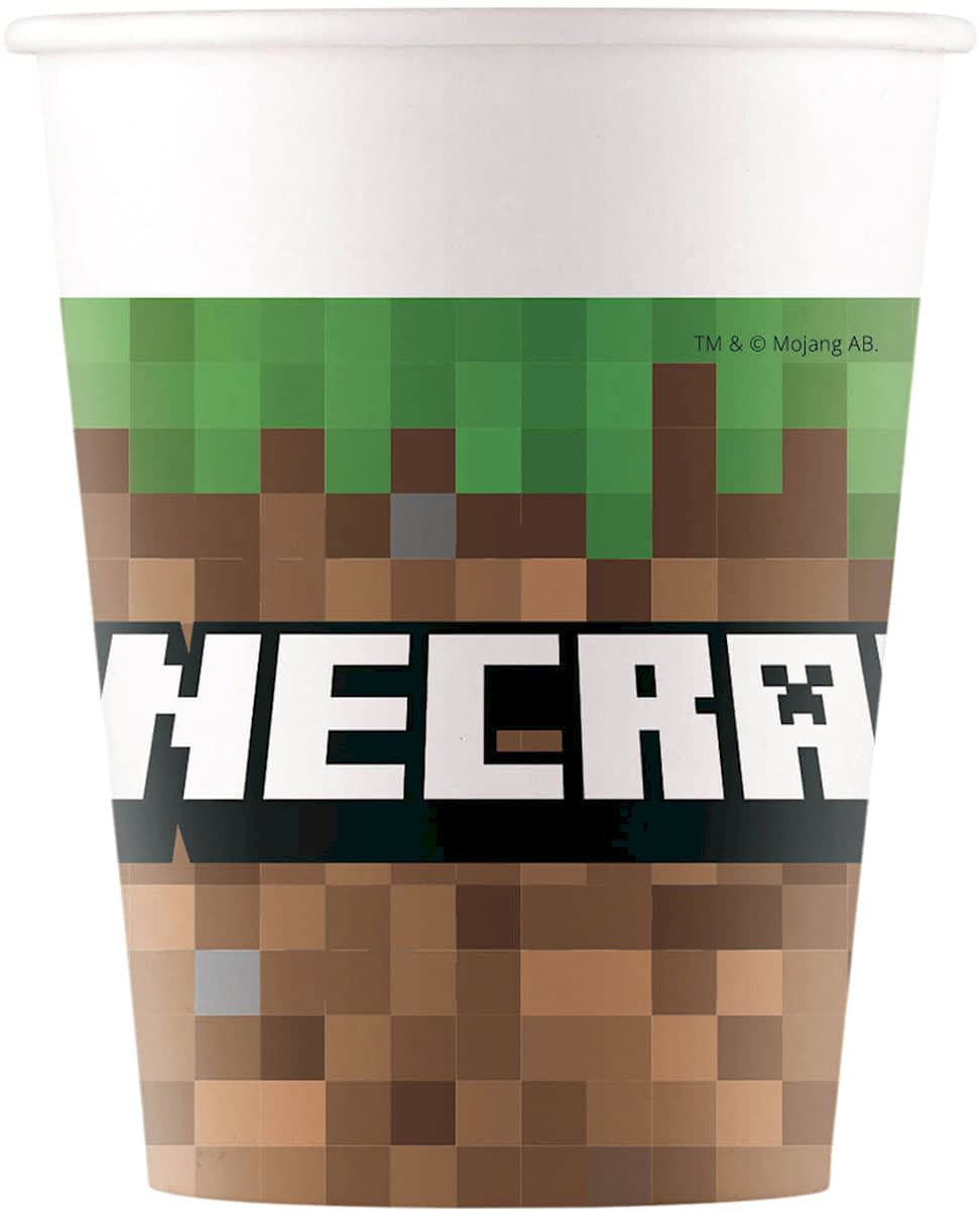 Perfekt til Minecraft™-borddekorasjonen din. Dette settet inneholder 8 Minecraft™-lisensierte pappkopper. Disse koppene er laget av papir og rommer omtrent 200 ml. De har design fra det berømte Minecraft™-videospillet, inkludert klosser i forskjellige farger og ordene «MINECRAFT» i midten i fet skrift. Dette settet med kopper vil være ideelt for å perfeksjonere borddekorasjonen din til et videospillarrangement! Inkludert tilbehør: 8 kopper Materiale: Papir Vedlikehold: Ikke vask