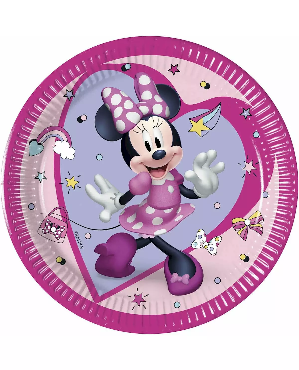 Pene jentetallerkener til en Minnie-bursdag! Disse tallerkenene er laget av papp og selges i pakker med 8. Offisielt lisensiert av Minnie™ og med en diameter på omtrent 20 cm, er de i nyanser av rosa og fuchsia og representerer den pene Minnie ledsaget av forskjellige mønstre. Organiser en Minnie-tema bursdagsfest med disse pene tallerkenene!. Inkludert tilbehør: 8 tallerkener Materiale: Papp