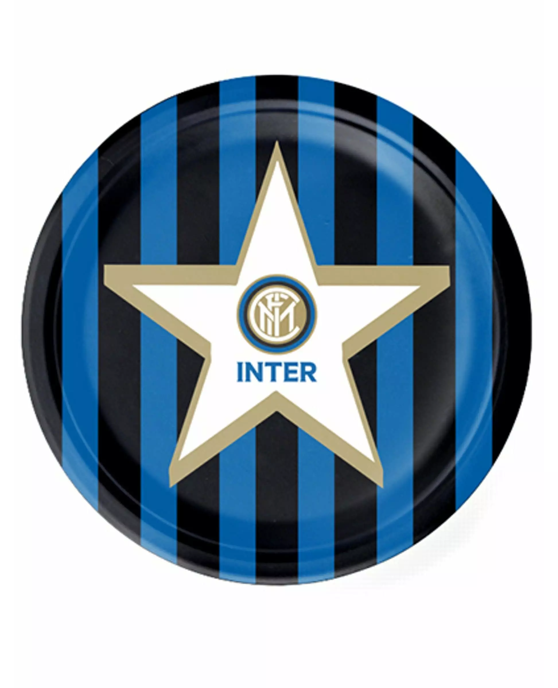 Inter Milan-supporter, begynn å planlegge bursdagsfesten din nå. Dette settet inneholder 8 offisielt lisensierte Inter™-tallerkener. De er laget av papp og måler omtrent 23 cm i diameter. Tallerkenene har svarte og blå striper. I midten er det en stjerne med fotballklubbens logo. Dette settet vil være perfekt for å fullføre borddekorasjonen din med Inter Milan-tema. Inkludert tilbehør: 8 tallerkener Materiale: Papp