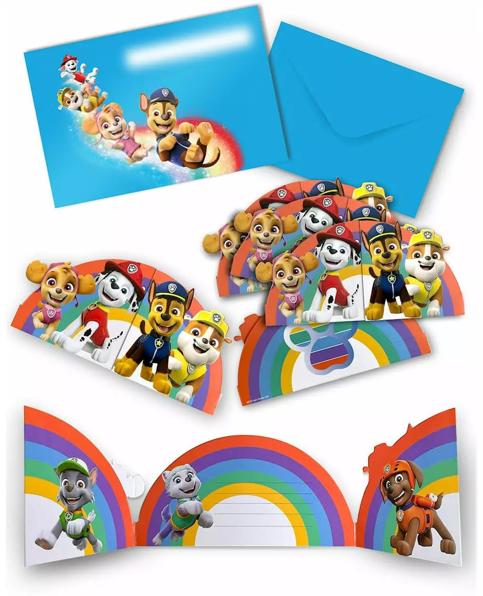 8 Paw Patrol invitasjonskort og papirkonvolutter