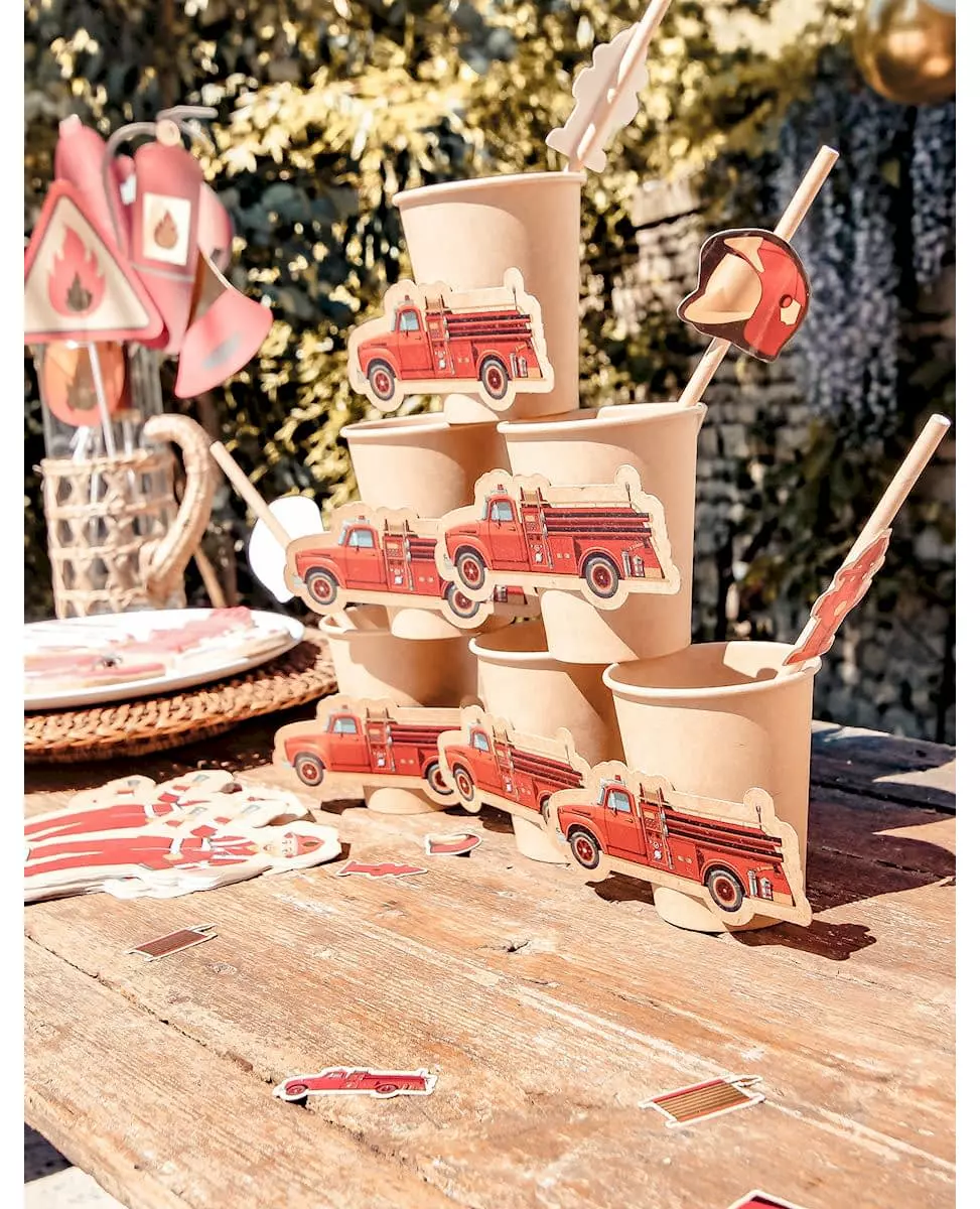 Vakre brannbiler som passer til drinkene dine! Dette settet består av 8 brannmannskraftkopper. De har en kapasitet på omtrent 255 ml og forestiller en brannbil i relieff. Disse koppene vil være perfekte som tilbehør til en bursdagsbuffet verdig en brannmann! Inkludert tilbehør: 8 kopper Materiale: Kraft