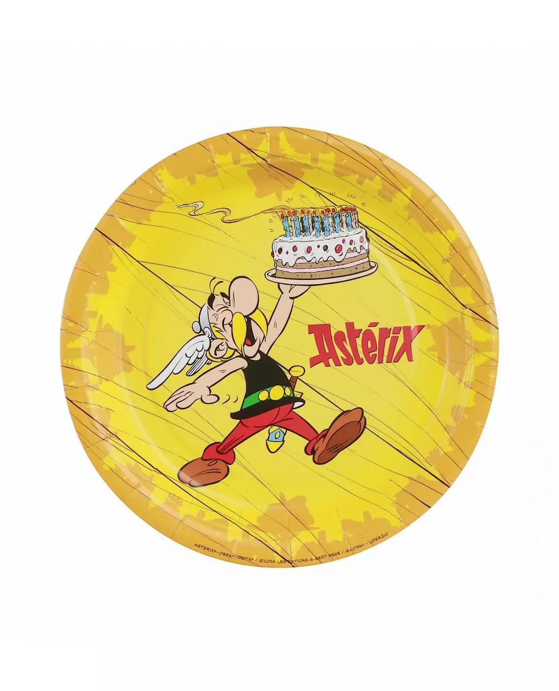 Skap et plask med disse Asterix™-tallerkenene Dette settet med 8 offisielt lisensierte Asterix™-paptallerkener er perfekt for en vellykket fest. Disse gule tallerkenene er omtrent 18 cm i diameter og dekorert med en illustrasjon av Asterix som holder en kake. De er ideelle for å komplettere engangsservise på en barnebursdagsfest med Asterix™-tema, og de gir et fargerikt preg på bordet ditt. Inkludert tilbehør: 8 tallerkener Materiale: Papp