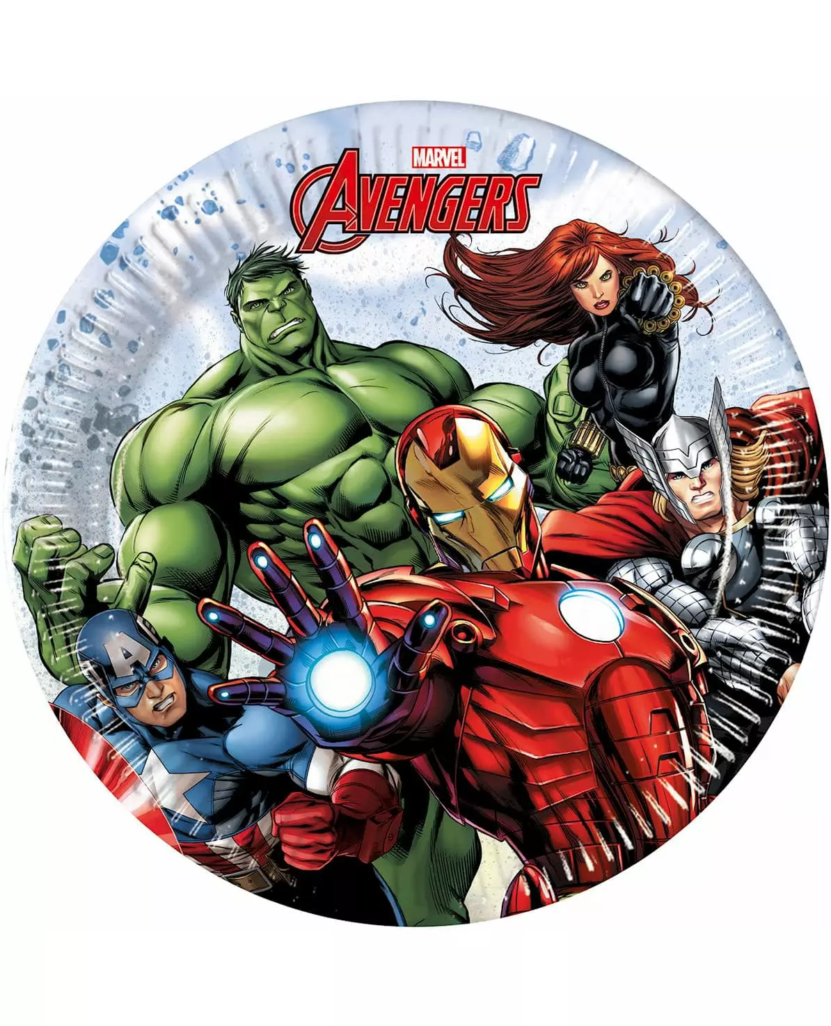 Ekte superhelter! Dette settet inneholder 8 små papptallerkener, offisielt lisensiert av Avengers™. De måler 20 cm i diameter. De representerer karakterer fra Avengers™-sagaen, som Iron Man, Hulken, Thor og Captain America. Fullfør bordet ditt med disse små tallerkenene til en Marvel™-temafest! Inkludert tilbehør: 8 små tallerkener. Materiale: Papp.