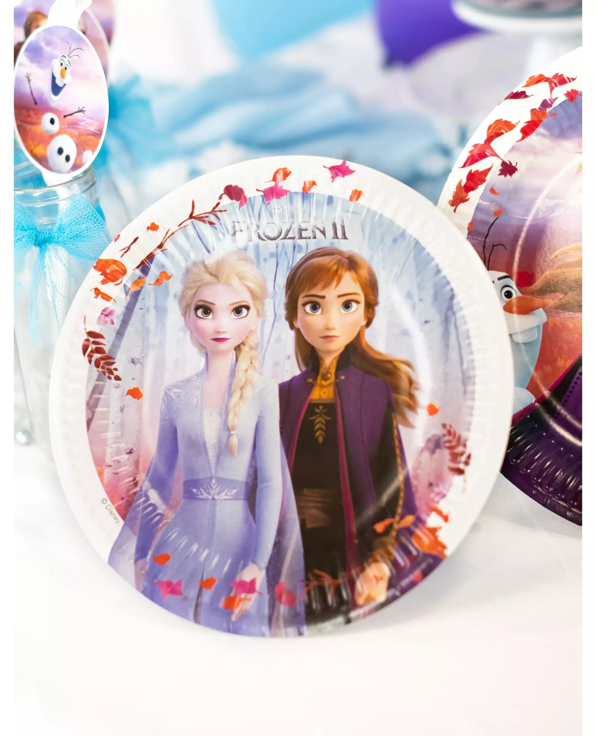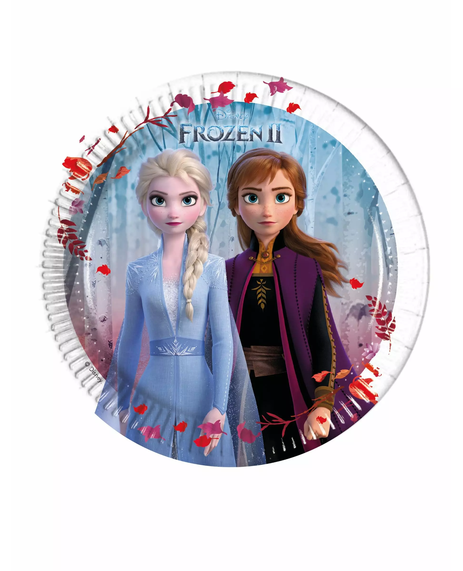 Små tallerkener til en Frost 2™-bursdagsfest! Disse offisielt lisensierte Frost 2™-paptallerkenene selges i pakker på 8. De har en diameter på omtrent 20 cm. Anna og Elsa er avbildet på engangstallerkenene med en blå skog i bakgrunnen. Disse små tallerkenene vil være perfekte til datterens Frost 2™-temabursdagsfest. Inkludert tilbehør: 8 små tallerkener Materiale: Papp