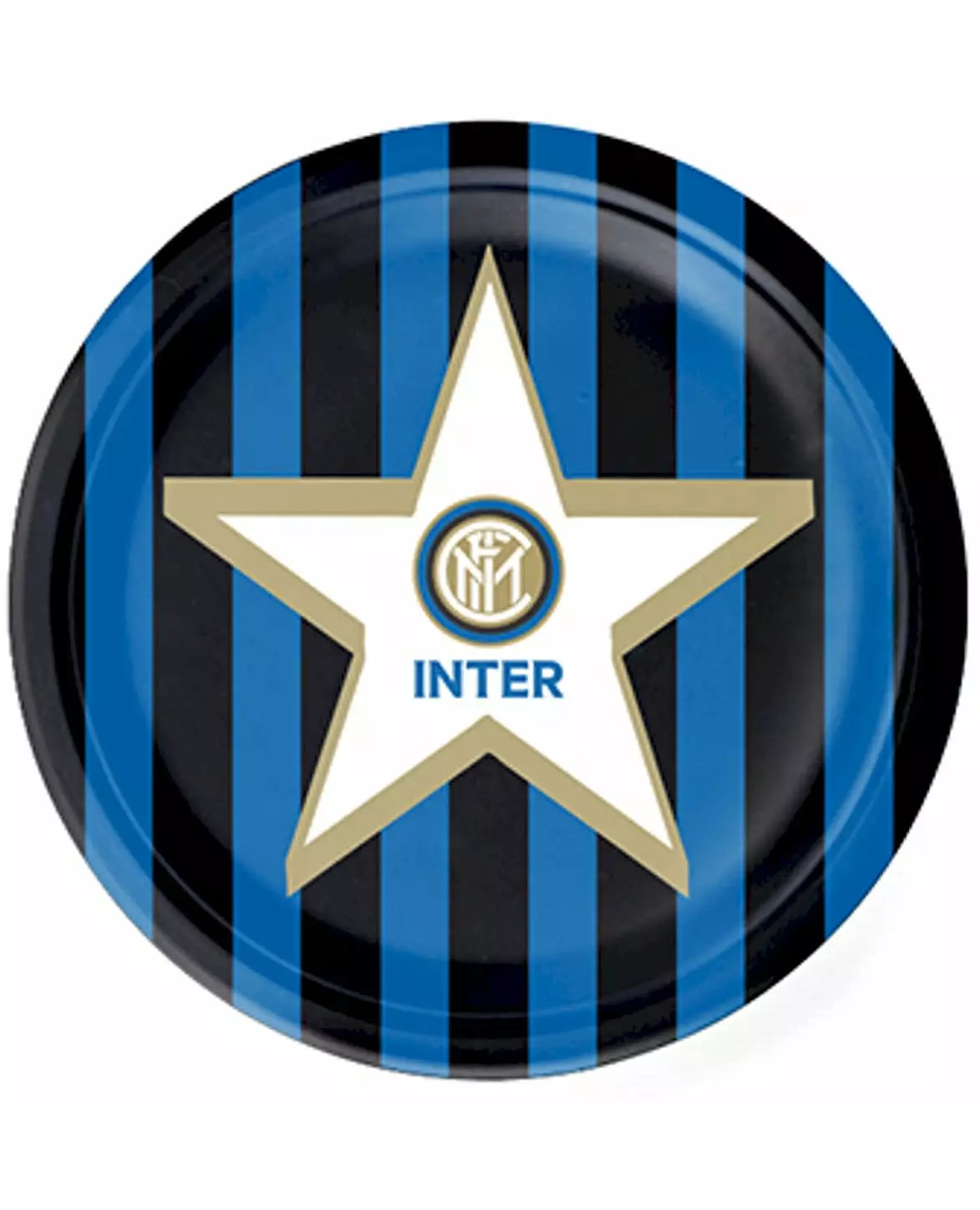 De perfekte tallerkenene for Inter Milan-fans. Dette settet består av 8 små Inter™-tallerkener. De er laget av papp og måler omtrent 18 cm i diameter. De er trykket med en stjerne med den milanesiske klubbens logo på en svart og blå stripete bakgrunn. Disse tallerkenene vil være perfekte for servering av bursdagskake. Inkludert tilbehør: 8 tallerkener. Materiale: Papp.
