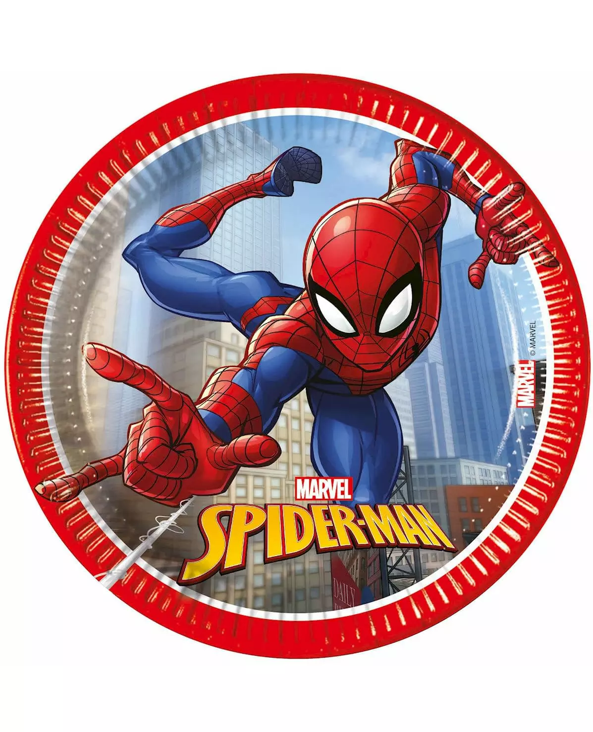 Den berømte Spiderman kommer til festen! Dette settet inneholder 8 offisielt lisensierte Spiderman-tallerkener. De er laget av papp med røde kanter og er dekorert med den berømte superhelten Spiderman! De har en diameter på omtrent 20 cm. Disse Spiderman-tallerkenene vil være perfekte for en bursdag verdig en superhelt! Inkludert tilbehør: 8 tallerkener Materiale: Papp