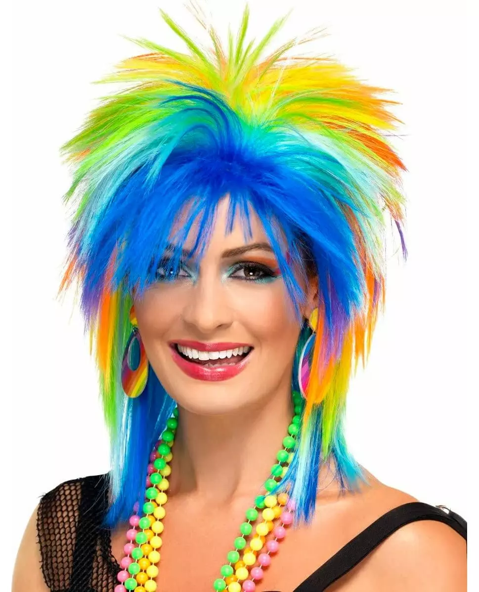 Lek med farger til punkkostymet ditt Denne retroparykken for voksne har en punkklipp. Håret er glatt på sidene av hodet og har en rotete effekt på toppen. Denne flerfargede parykken vil være perfekt for å fullføre et punkkostyme på en fargerik og original måte til en 80-tallsfest. Inkludert tilbehør: Parykkmateriale: Syntetisk 100 % elastolefin 100 % elastolefin